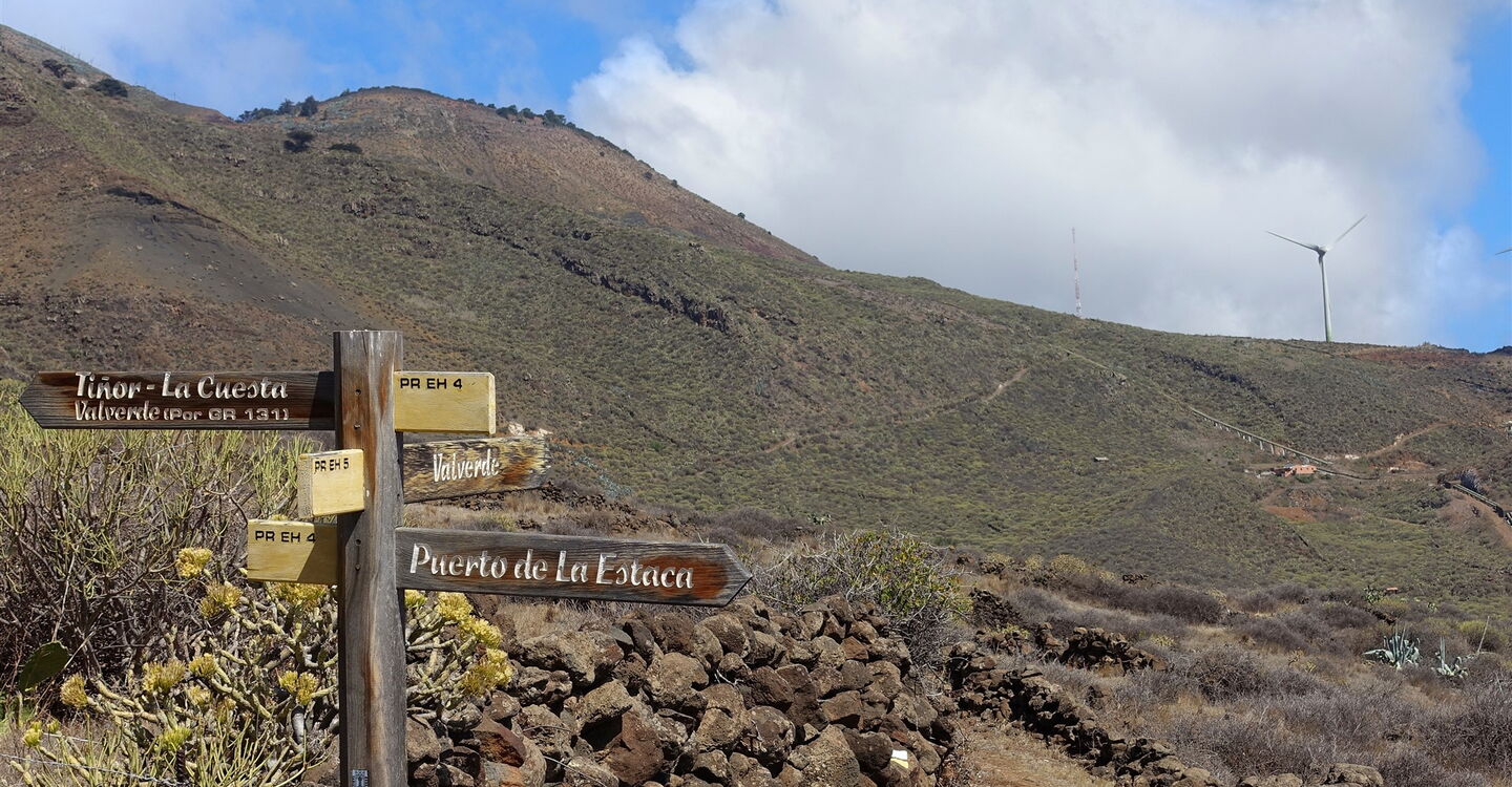 Mittelschwere Wanderung mit vielen Höhenmetern. Art des Weges: 10 % Straße, 20 % Pfade und 70 % Camino. Zusatzausrüstung: keine. Einkehrmöglichkeit: keine auf der Wanderung. In Valverde gibt es viele Restaurants. Beste Wanderzeit: ganzjährig. Interessantes: Der Pfad führt vorbei am unteren Wasserreservoir und den fünf Windrädern des Wind-Wasserkraftwerks.