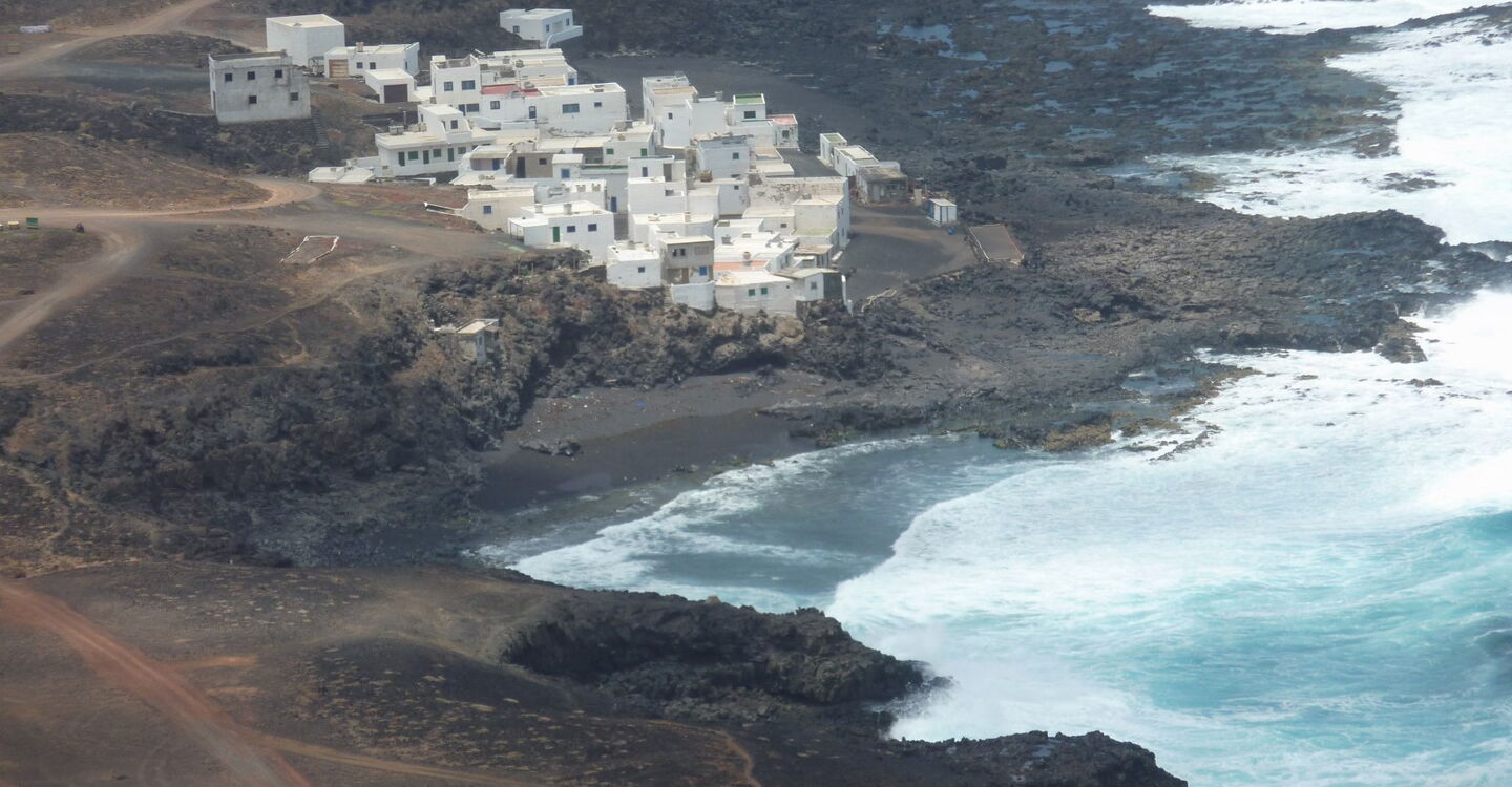 Der Ausgangspunkt der heutigen Wanderung ist der Ort Tinajo. Um warm zu werden, besteigen wir den Hausberg, wo wir uns einen ersten Überblick über die Region verschaffen können. Über eine Schotterpiste erreichen wir einen versteckten Küstenpfad. Wir steigen Richtung Tenesar ab, das wie ein kleines Piratendorf in der absoluten Abgeschiedenheit der Westküste – der Wilde Westen - liegt. Fanden wir auf dem ersten Wegstück noch zahlreiche kultivierte Flächen vor, so prägt hier eine unwirkliche Lavalandschaft das Landschaftsbild. Nachdem wir Tenesar hinter uns gelassen haben, führt ein Weg parallel zu dem Lavastrom der Neuzeitausbrüche und vorbei an einer Steinwüste unterhalb der Montaña de Teneza. Wir erreichen die gering befahrene Asphaltstraße, auf der wir bis zum Ausgangspunkt gehen.