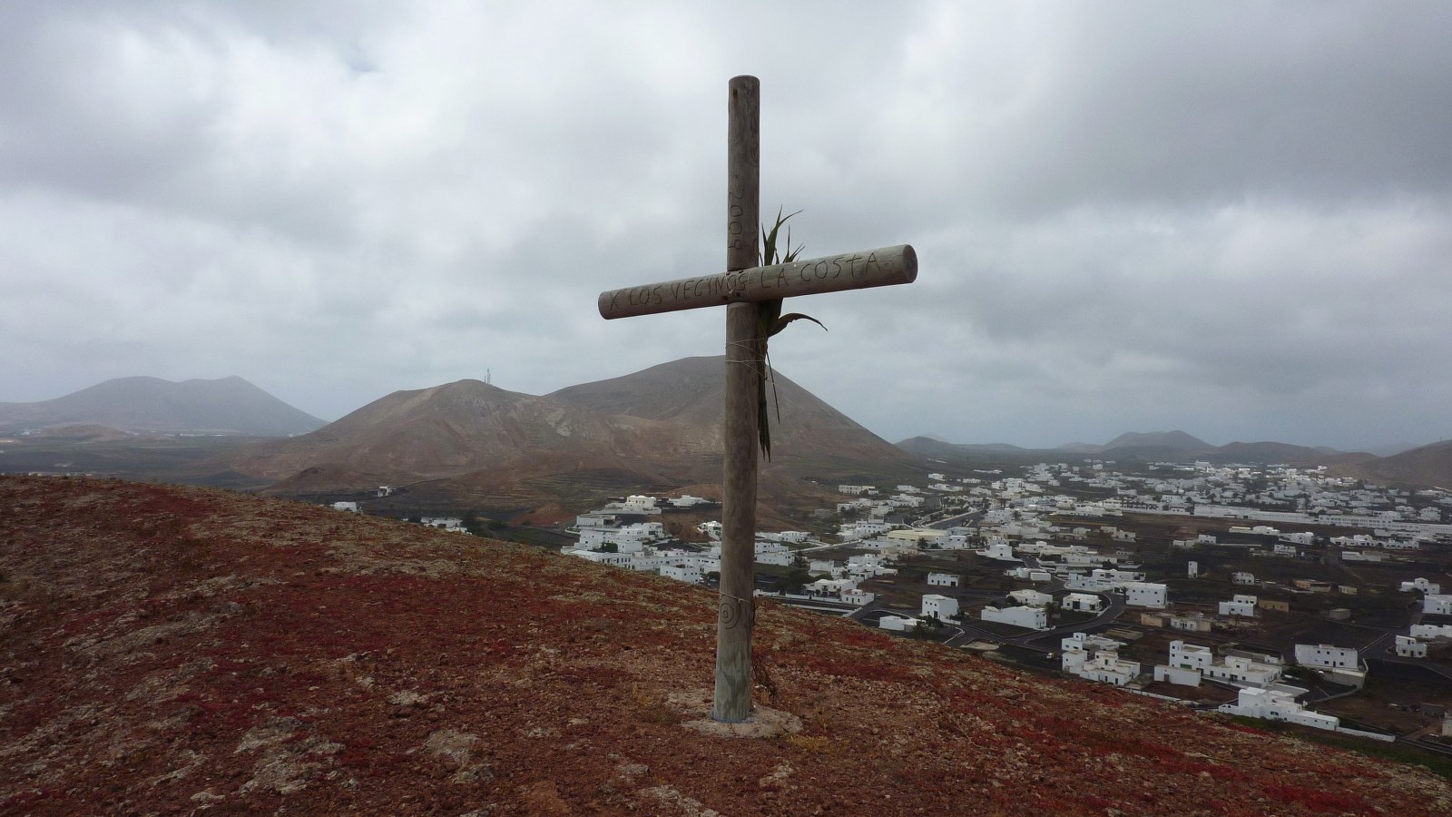 Vom (01) Parkplatz (205 m) gehen wir bis zur Norfolktanne an der Hauptstraße vor, um dann in die gegenüberliegende Calle La Laguneta zu biegen. Vorbei geht es an gigantisch hochgewachsenen Kakteen, bis nach weiteren 100 m, hinter einer Rechtskurve, rechts ein Pfad abzweigt. Er ist zunächst gesäumt von Steinen. Vor einer kleinen Höhle geht es dann links hoch zum Vulkanrand. Im Uhrzeigersinn führt uns der Weg bis zum Gipfelkreuz. Wir gehen nun 300° auf dem Vulkankrater, bis in einer fast kompletten Kehrtwendung ein Pfad rechts herunter zu einer Schotterstraße führt. Dort angekommen gehen wir rechts in östliche Richtung. Wir erreichen bereits nach 20 m eine Weggabelung und gehen dort links, um dann an ihrem Ende bei der Asphaltstraße abermals links zu gehen. Nach 600 m Wanderung in nördliche Richtung biegen wir die 3. Straße links ein, den Camino las Herrentas.
