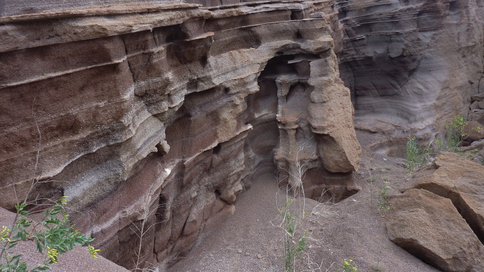 Nach einer Anhöhe können wir in der Ferne das Piratendorf (03) Tenesar (8 m) sehen. Oberhalb der steilen Klippe führt der Pfad bis in ein Barranco, dem wir rechts für 170 m in Richtung Küste folgen. Anschließend gehen wir direkt auf die weißen Häuser von Tenesar zu. Bei einer gepflegten Brotzeit kann man beobachten, wie Riesenwellen mit ihrer enormen Gewalt an der Küste brechen. Am östlichen Rand des Dorfes liegt noch versteckt die nicht ganz saubere Playa Tenesar, die man je nach Stand der Gezeiten über einen Pfad unterhalb der Klippe erreichen kann.