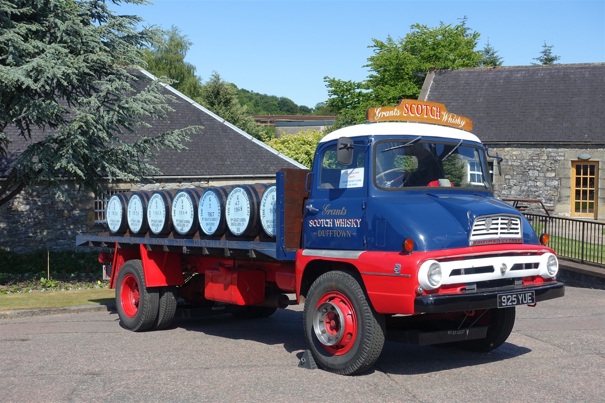Beim großen Parkplatz an der Glenfiddich-Whiskybrennerei gehen wir bis an die Hauptstraße zurück und dort einige Meter links bis zur Bushaltestelle mit einer kupfernen Brennblase, die zur Destillation verwendet wird. Nach der Busfahrt erreichen wir die Ortschaft Aberlour. Wenn wir nicht zu früh aussteigen, sind wir bei dem großen Platz mit der dahinter liegenden Kirche. Direkt hinter dem Coop gehen wir links in die Queens Road und biegen bei der nächsten Möglichkeit rechts ab. Wir gehen am Ende der Straße bis an den Bach herunter, rechts bis zur Straße vor, links über die Brücke und abermals links bis zur 1826 gegründeten 01 Aberlour Distillery (95 m). Das Besucherzentrum befindet sich in einem urigen Steinhaus unter einer riesigen Norfolktanne.