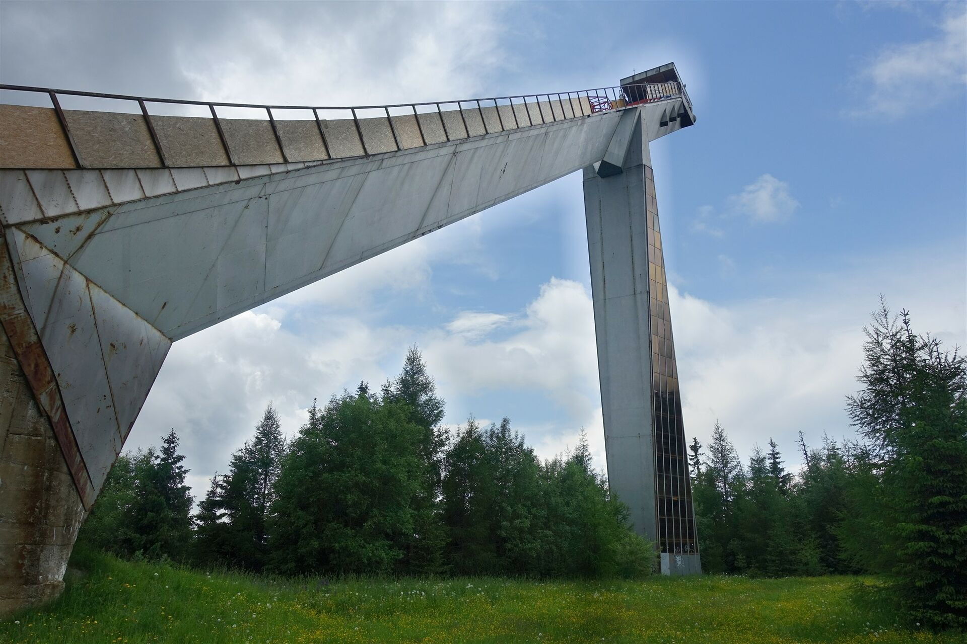 Hohe Tatra - vor der Mlynická dolina sieht man links auf dem Berg die große Sprungschanze