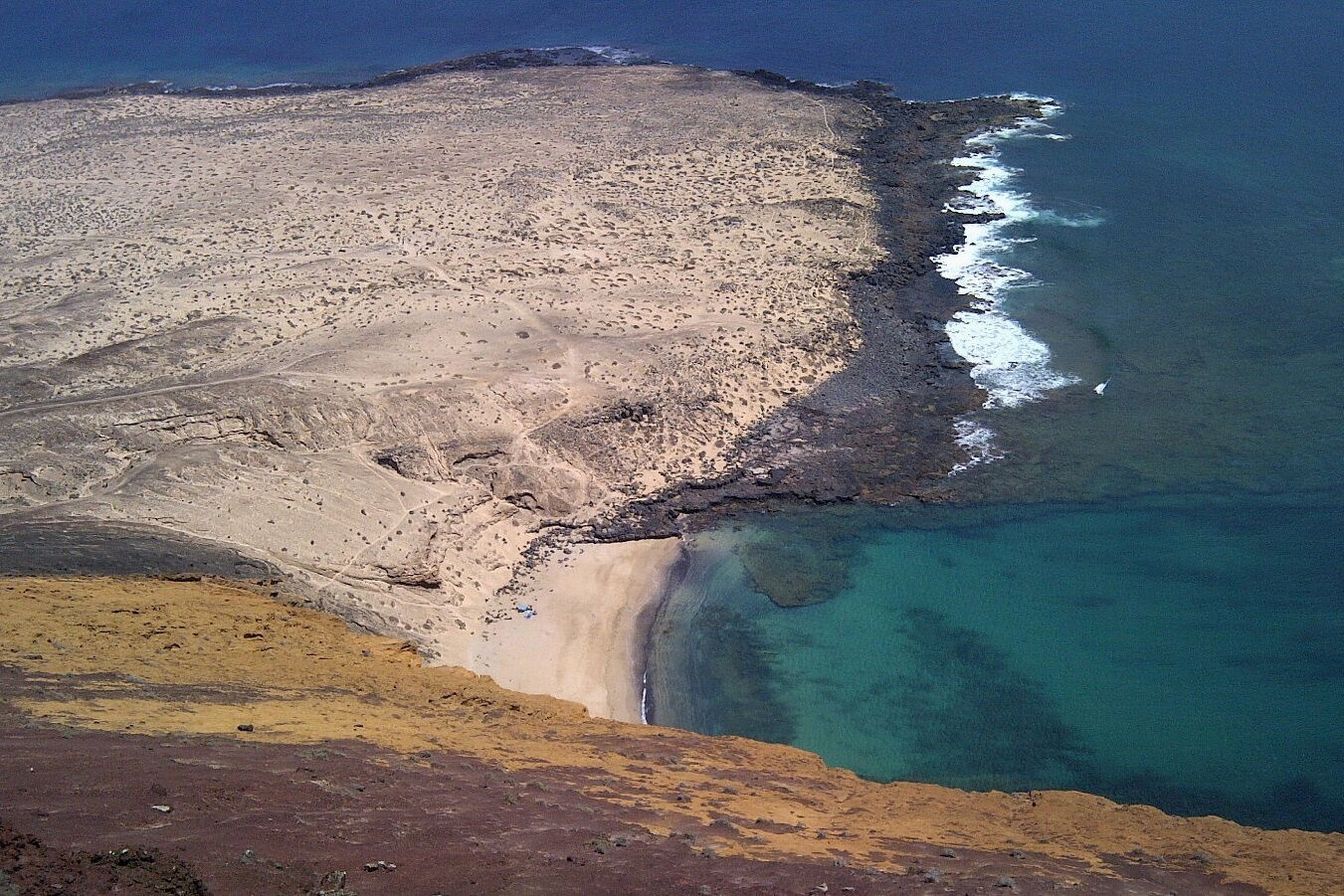 Lanzarote - die Playa de La Cocina vom Gipfel der Montana Amarilla