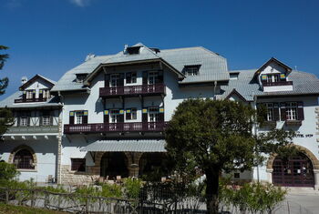 Aufstieg zu einem Hotel im Südtiroler Stil der 30er Jahre – und das auf Rhodos!