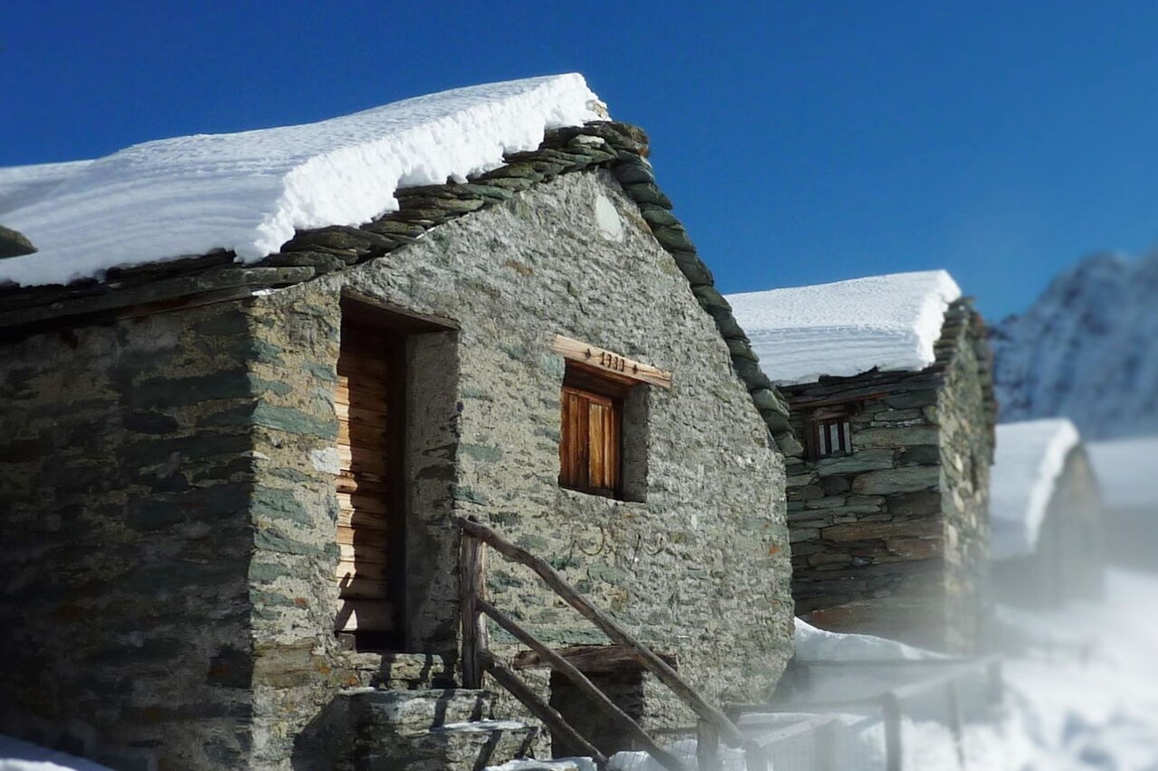 Vorbei an weiteren Dörfern gelangen wir auf den Walser Wanderweg, der uns je nach Schneeverhältnissen bis nach Alagna führt. Ab März ist meistens Tragen angesagt.