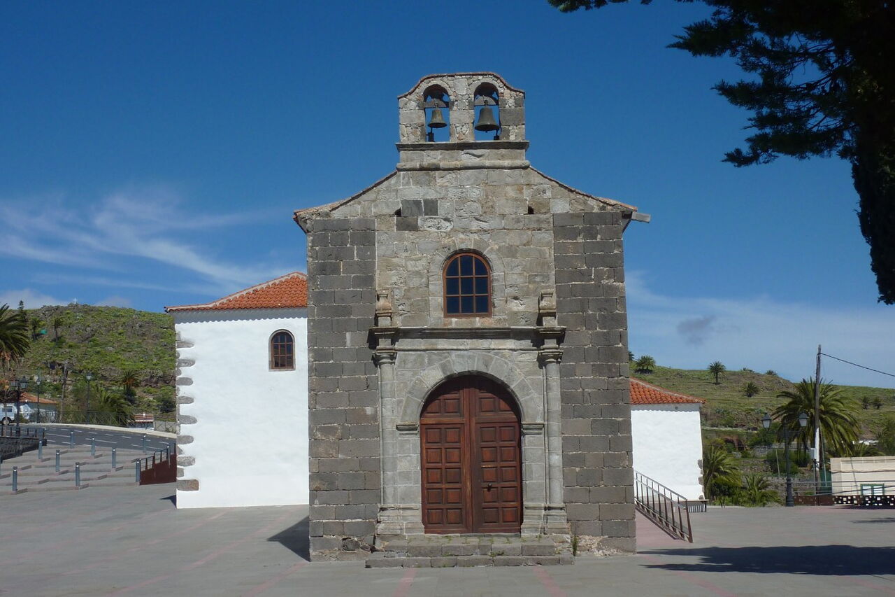 Nach 80 m folgen wir rechts der Ausschilderung Richtung (02) Ermita de San Isidro Labrador (803 m), bis wir auf einen Parkplatz treffen. Nach weiteren 500 m auf einem gepflasterten Weg haben wir den Mirador de Tagaragunche auf der Montaña del Calvario 806 m und die Ermita de San Isidro Labrador erreicht. An dieser Stelle wachte ein Posten, um nach Piraten Ausschau zu halten oder in Kriegszeiten vor Angreifern zu warnen. Bei guter Sicht ergeben sich atemberaubende Fernblicke: Im Osten angefangen sieht man den Teide auf Teneriffa, bei besonders guter Sicht Gran Canaria, San Sebastián, den Flughafen von La Gomera, die vorgelagerten Bergrücken auf La Palma und El Hierro. Nach dem Abstieg, wir befinden uns bereits auf der Asphaltstraße, biegen wir nach 80 m auf den links beginnenden Pfad ab. Auf dem Camino verlieren wir schnell an Höhe und befinden uns jetzt direkt unterhalb der Montaña del Calvario.