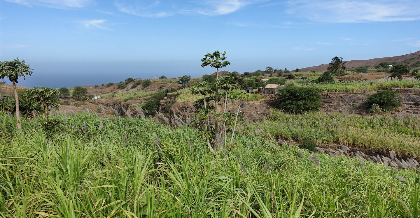 Besonders intensiv erlebt man auf der heutigen Tour die grünen Oasen, die durch die Besiedlung entstanden sind. Die Bauern haben über Generationen das wüstenartige Gelände eingeebnet, so entstanden effizient angelegte Terrassenfelder. Während sich das Trockenflussbett des Ribeira do Alto Mira Richtung Meer schlängelt, gibt es auf seinem Weg immer wieder Quellen. Deren Wasser wird in geschickt ausgeklügelten Systemen über Wasserleitungen verteilt, um die kleinen und weit abgelegenen Oasen mit der kostbaren Flüssigkeit zu versorgen. Landschaftsprägend ist auch die über Jahrtausende entstandene tiefe Schlucht des Ribeira do Alto Mira, die von steilaufragenden Bergen flankiert wird. Durch diese überwältigende Szenerie führt die heutige Wanderung bis zum Endpunkt der Tour, dem gottverlassenen Dorf Ribeira da Cruz, im nordwestlichen Teil der Insel Santo Antão.