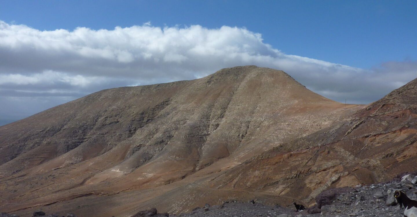 Danach geht es in Kehren 2 km und 200 Höhenmeter bergauf bis zur Einsattelung (05) Degollada de Portugués (431 m). Links, etwas unterhalb unseres Standorts, liegt eine weitere Ziegenhaltung. Von dort führt eine Schotterstraße zur LZ-702, in die El-Ruicón-Ebene. Rechts von uns befindet sich ein Abzweiger auf den Pico Redondo. Wir gehen aber auf dem eingeschlagenen Weg weiter - dabei macht der Weg eine leichte Rechtskurve um eine Kuppe herum -, bis wir nach 100 m auf einen Pfad treffen. An dieser Stelle wandern wir weiter rechts und gehen nun Richtung Norden durch die Westflanke des Pico Redondo. An den Stellen, wo der Weg angelegt wurde, schimmert hellbraunes Gestein hindurch. Als Orientierungshilfe können wir eine Wasserleitung nutzen, die auf dem ersten Teilstück parallel zum Weg verläuft. Im Verlauf gehen wir unter zwei Strommasten hindurch und erreichen bald die Ziegenhaltung, die wir bereits vom Hinweg kennen. Von hier aus gehen wir das letzte Teilstück bis nach Femès herunter.