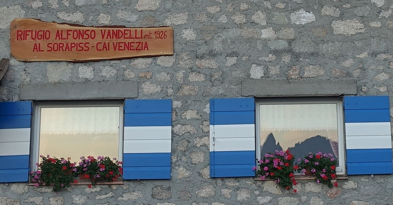 Zunächst führt der Wanderweg gemächlich durch den Wald, aber hinter einem Wasserfall steigt der Pfad an. Bei der darauffolgenden Weggabelung gehen wir halb rechts, auch ausgeschildert Richtung Rifugio Vandelli. Anschließend geht es über Metalltreppen und einen schmalen, mit Stahlseilen gesicherten Pfad, für den Trittsicherheit und Schwindelfreiheit ein Muss sind. Der Wanderweg gabelt sich abermals, links führt der Wanderweg 243 zum 05 Rifugio Vandelli (1.928 m), rechts führt der Wanderweg 215 zum Lago del Sorapiss.