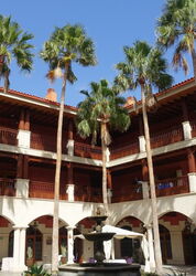 Für den Rückweg erfolgt zunächst der Abstieg bis zur (03) Degollada de Maninubre (605 m), um dort rechts in das sich öffnende Tal voranzuschreiten und den endgültigen Abstieg zu beginnen. Auf dem Pfad, der schon bald zu einer Schotterpiste wird, wandern wir parallel zu einem Barranco und kommen an Staustufen vorbei. Im unteren Bereich gabelt sich der Weg und wir queren das Barranco nach rechts, bis der Weg an einer Asphaltstraße endet. Hinter der vor uns stehenden 2 m hohen Steinmauer führt ein versteckter Weg herunter zu den Ruinen des 1416 gegründeten ehemaligen (05) Franziskanerklosters (422 m). Nach dem Abstecher zum ehemaligen Kloster gelangen wir auf der Asphaltstraße direkt bis zur Durchgangsstraße in Betancuria. Man könnte jetzt auf direktem Weg zum Parkplatz vorgehen, aber es gibt noch viel zu entdecken in diesem malerischen Bergdorf.