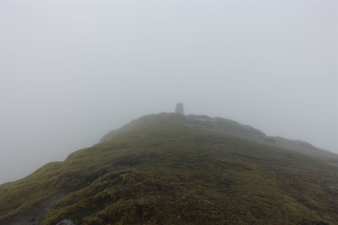Wir setzen unseren Weg auf dem lang gezogenen Bergrücken fort, bis er noch einmal zum finalen Aufstieg etwas steiler wird. Wir haben den 03 Ben Lomond (974 m) bestiegen. Von hier aus können wir in den beeindruckenden östlich gelegenen Felskessel hineinschauen, zuvor war die Sicht versperrt. Der 360°-Fernblick lässt uns verharren, wenn das Wetter mitmacht! Der einfachste Rückweg ist der Hinweg. Eine anspruchsvollere Alternative ist der Abstieg über den nordwestlich gelegenen Grat.