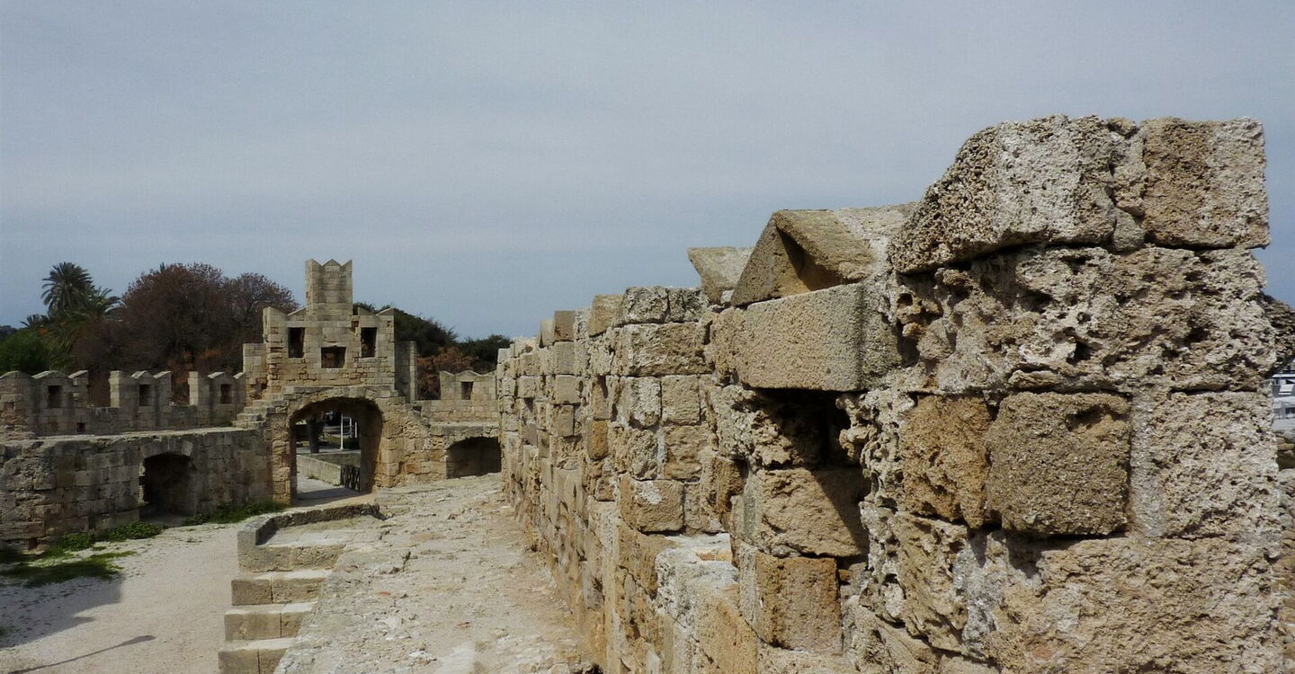 Nachdem die Ritter sich Rhodos angenommen hatten, vervollständigten sie im Jahr 1306 die bereits bestehenden byzantinischen Befestigungen. Ein sehr wichtiger Baustein ihrer Verteidigungsstrategie war der Burggraben, ein der Burg vorgelagertes Annäherungshindernis, um zu verhindern, dass die Angreifer unmittelbar an die Tore oder Mauern der Burg gelangen konnten. Seither ist die 4 km lange Stadtmauer mit bis zu 12 m dicken Mauern, rund 20 m hoch, unverändert geblieben. Was liegt da näher, als einen Orientierungsgang durch den bis zur 50 m breiten Burggraben der Ritterstadt Rhodos zu machen – ein sehr lohnendes Abenteuer. Es geht dabei durch Tunnel und über Brücken. Auf diesem Wege lassen sich am besten die 8 Verteidigungsabschnitte (französische Mauer, deutsche Mauer, Mauer der Ritter aus der Auvergne, Mauer der Krone Aragon mit der spanischen Bastion, englische Mauer, Mauer der Ritter der Provence und Mauer der Italiener sowie um die Hafenanlage die Mauern von Kastilien) des Bollwerks des Johanniterordens erkunden.