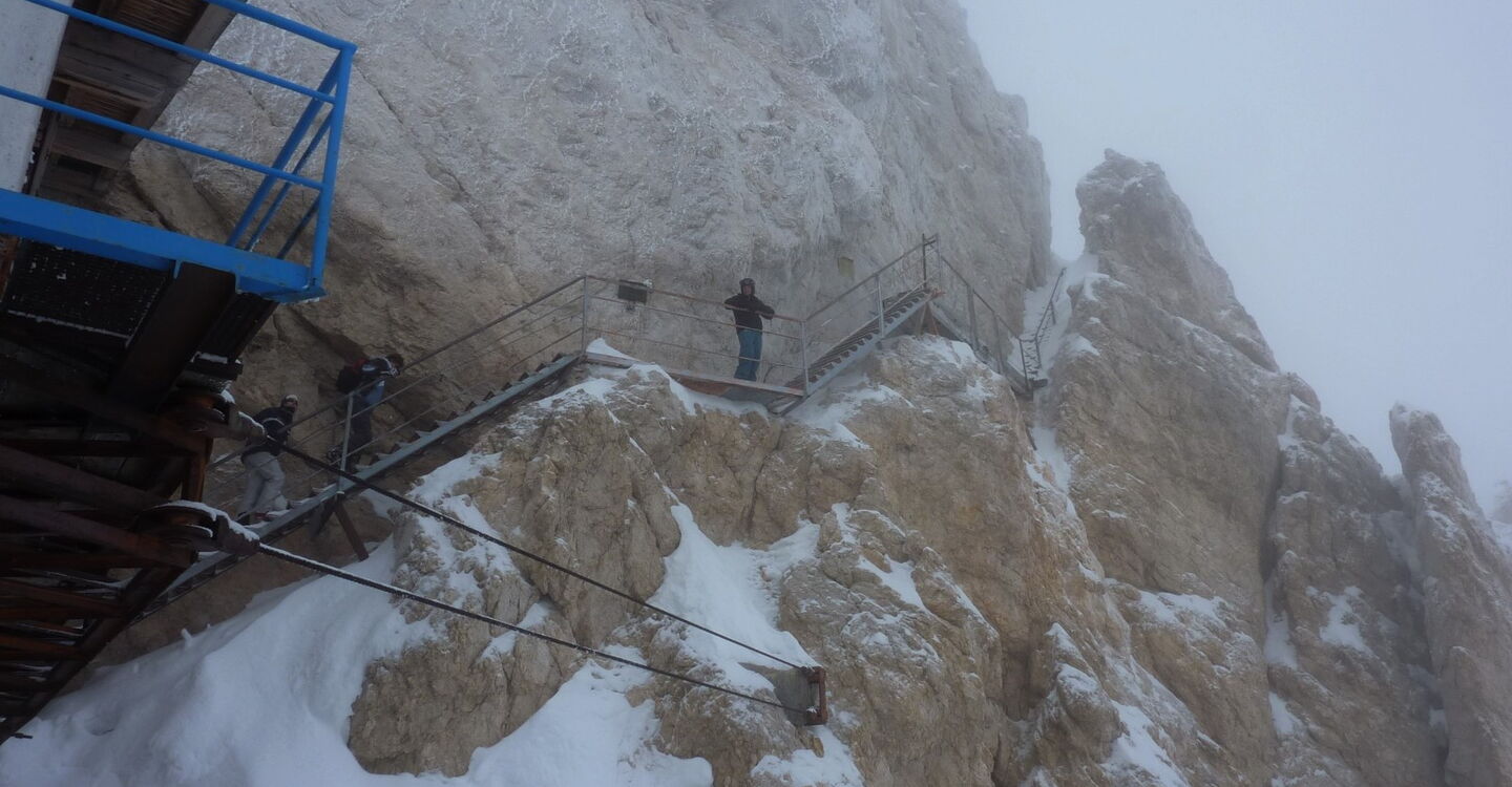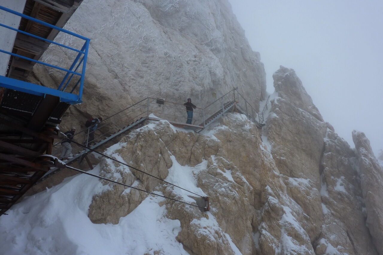 Es ist zu beachten, dass man nur in Begleitung eines Bergführers zur Bergstation des Lifts Nr. 58 Son Forca Forecella Staunies befördert wird! Wir steigen die links von uns liegende Leiter hoch.