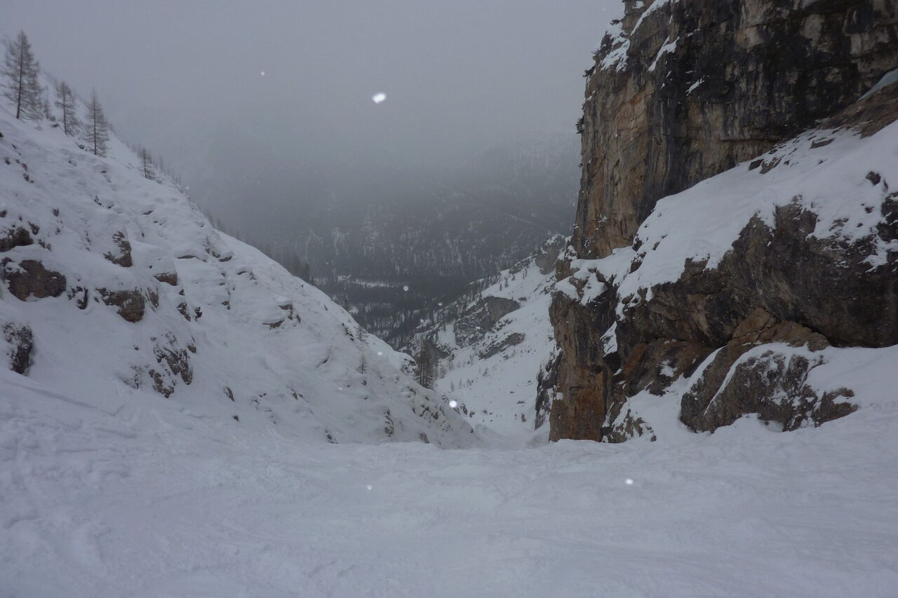 Einfache Orientierung auf der gesamten Strecke. Der Einstieg ist sehr steil! Die Abfahrt führt über einen Nordhang. Folgende Ausrüstung wird empfohlen: Produkte für alpine Sicherheit im Schnee, Freerideski und Skitourenhelm. Es empfiehlt sich die Einkehr in das Rifugio Cimabanche am Ende der Tour. Beste Jahreszeit: Januar bis April. Uns erwarten kurze Stücke mit bis zu 45° Hangneigung.