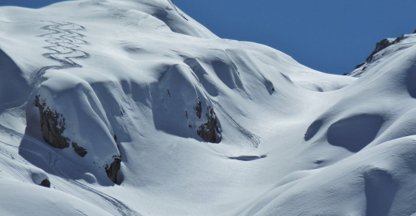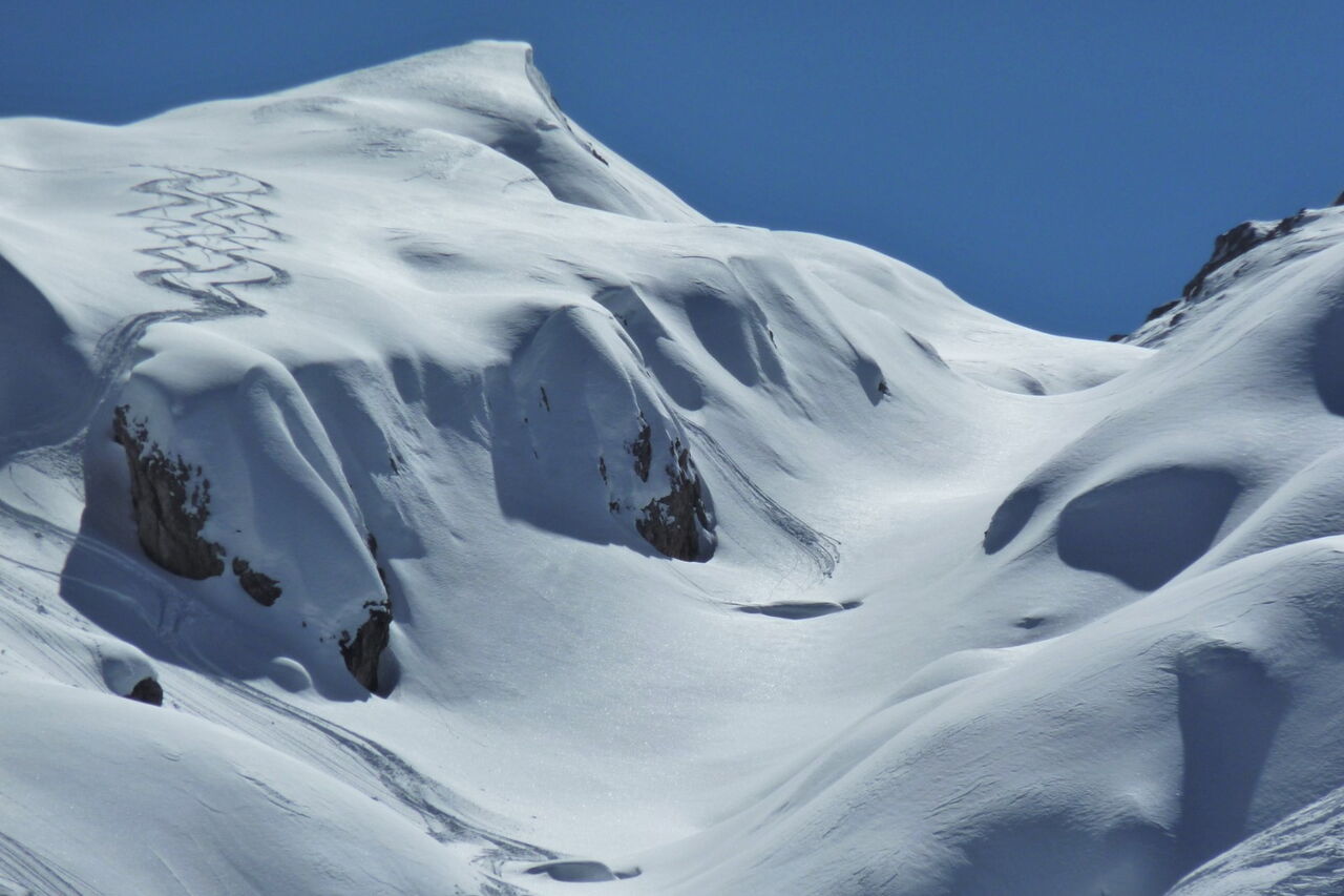 Um die Mittagszeit steht die Sonne direkt über dem schmalen Taleinschnitt. Und wir hatten als Erster eine sensationelle Tiefschneeabfahrt!