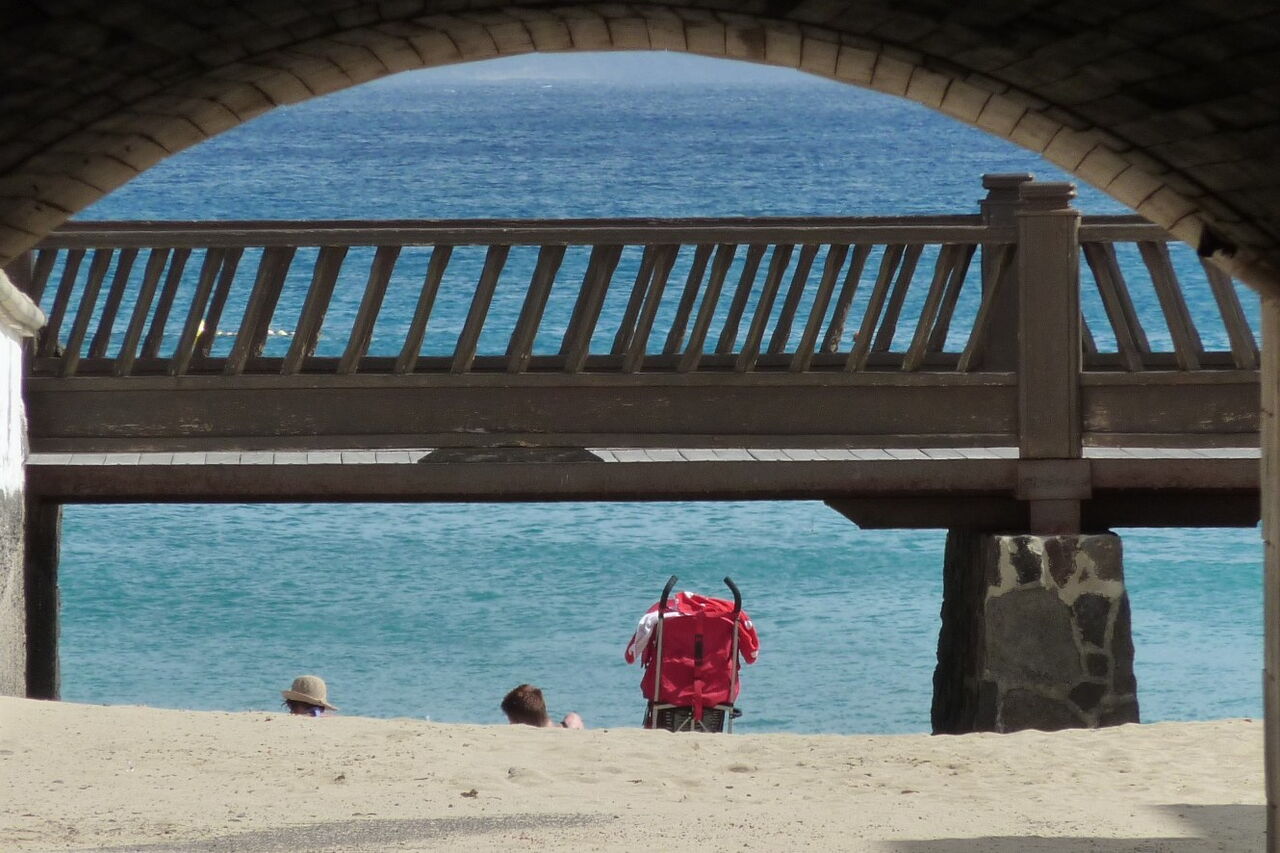 Vorbei geht es an zwei kleineren Bungalowanlagen und einem kleinen Strandabschnitt, bis links von uns das riesige Hotel Rubicon Place auftaucht. Es folgt noch ein sehr kleiner Strandabschnitt, der Natura Beach, bis dann Schlag auf Schlag die Hotelburgen Natura Palace Hotel, Residencial Playa Real, Atlantic Gardens und Timanfaya Palace passiert werden. Wir erreichen schließlich die künstlich angelegte (03) Playa Flamingo (17 m). Durch zwei Molen geschützt, ist das Baden auch bei Wind für Groß und Klein verhältnismäßig ungefährlich. Mehrere Restaurants und ein Supermarkt sind in der Nähe des oft überfüllten Strandes zu finden.