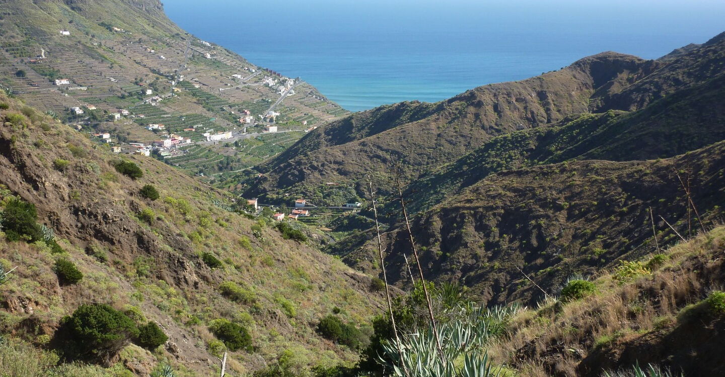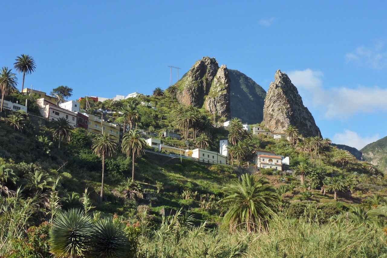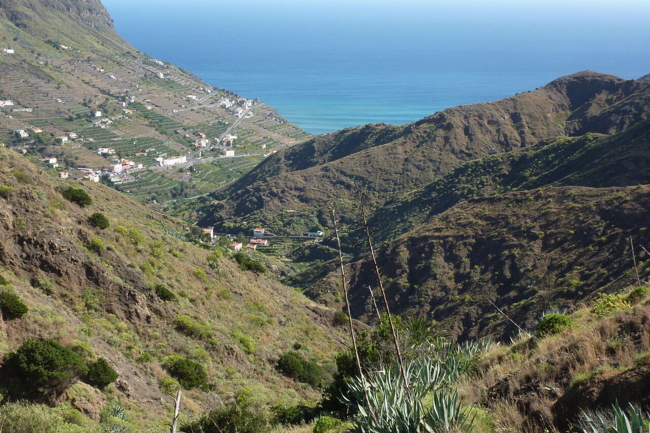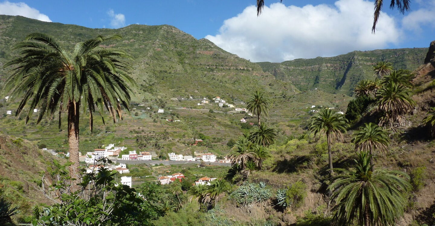 Unsere Wanderung beginnt in Hermigua, dem Hauptort des Nordostens von La Gomera. Begünstigt durch die Passatwinde und die daraus resultierenden Niederschläge, wird Hermigua auch das grüne Herz der Insel genannt. Im gesamten Tal sind terrassenförmige Plantagen angelegt worden. Bei diesem Anblick verwundert es nicht, dass sich in dieser Region 50 % der gesamten Bananenanbaufläche von La Gomera befinden. Es erwartet uns ein vielfältiges Wandererlebnis: ein wunderschön angelegter Wanderweg durch ein schmales Tal mit schattenspendenden Palmen, wasserführende Barrancos, atemberaubende Blicke nach Teneriffa mit seinem Vulkan, dem 3718 m hohen Teide, sowie Blicke aus der Vogelperspektive nach Hermigua.