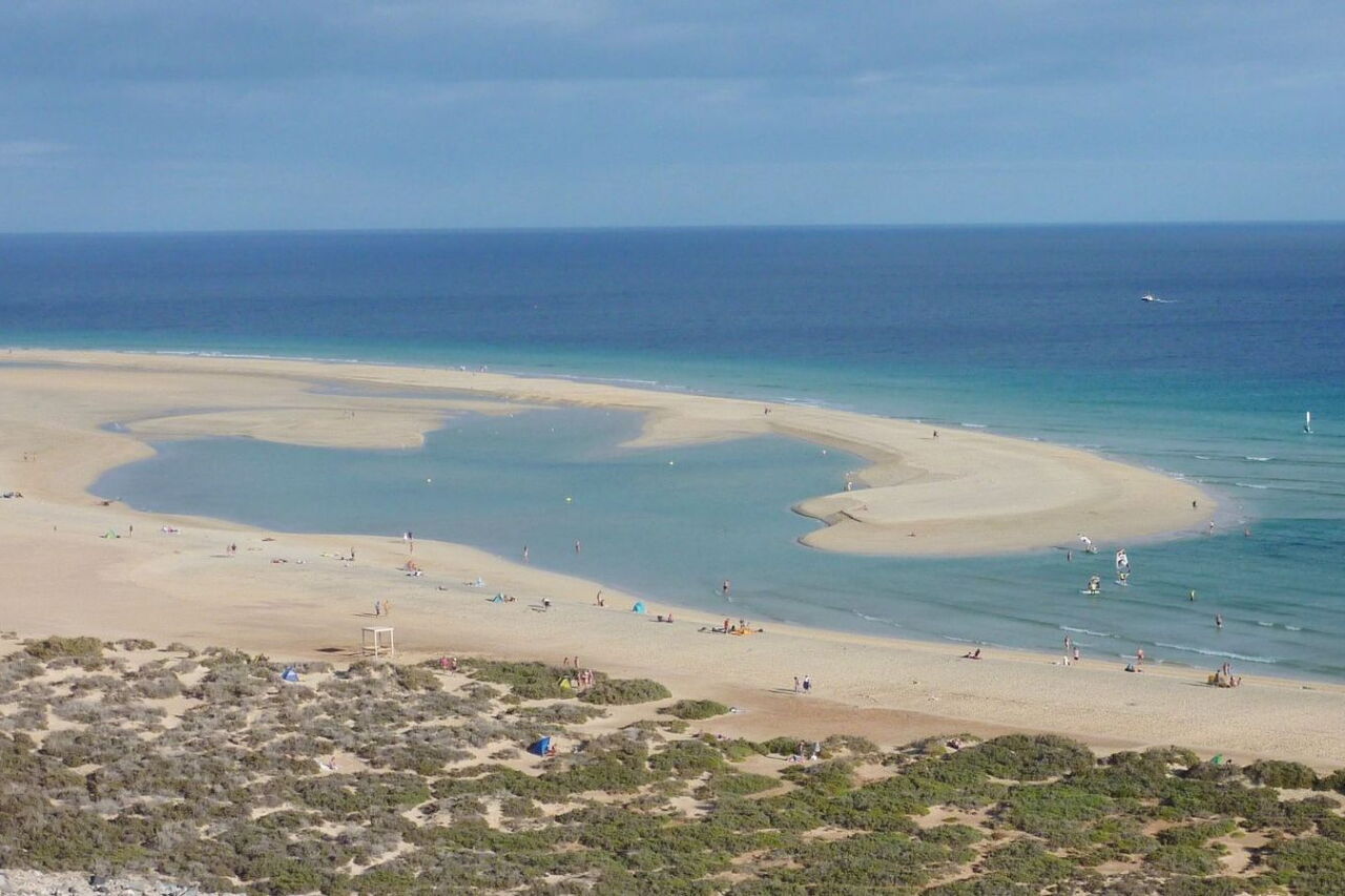 Bei dieser Wanderung über einen der schönsten Strandabschnitte – Playa Barca (km 0,5), Playa Risco del Paso (km 4,5), Playa El Salmo (km 6,6), Playa del Mal Nombre (km 7,6) und Playa de Esquinzo Butihondo (km 9,4) – der Insel geht es durch eine beeindruckende Lagunenlandschaft, die bei Ebbe zum Wattwandern einlädt. Wir kommen außerdem vorbei an zwei großen Wanderdünen, bevor wir einen weiteren Höhepunkt erreichen, eine kleine Kolonie von Atlashörnchen. Vor der Rückfahrt mit dem Bus kann man sich im Restaurant Marabu stärken.