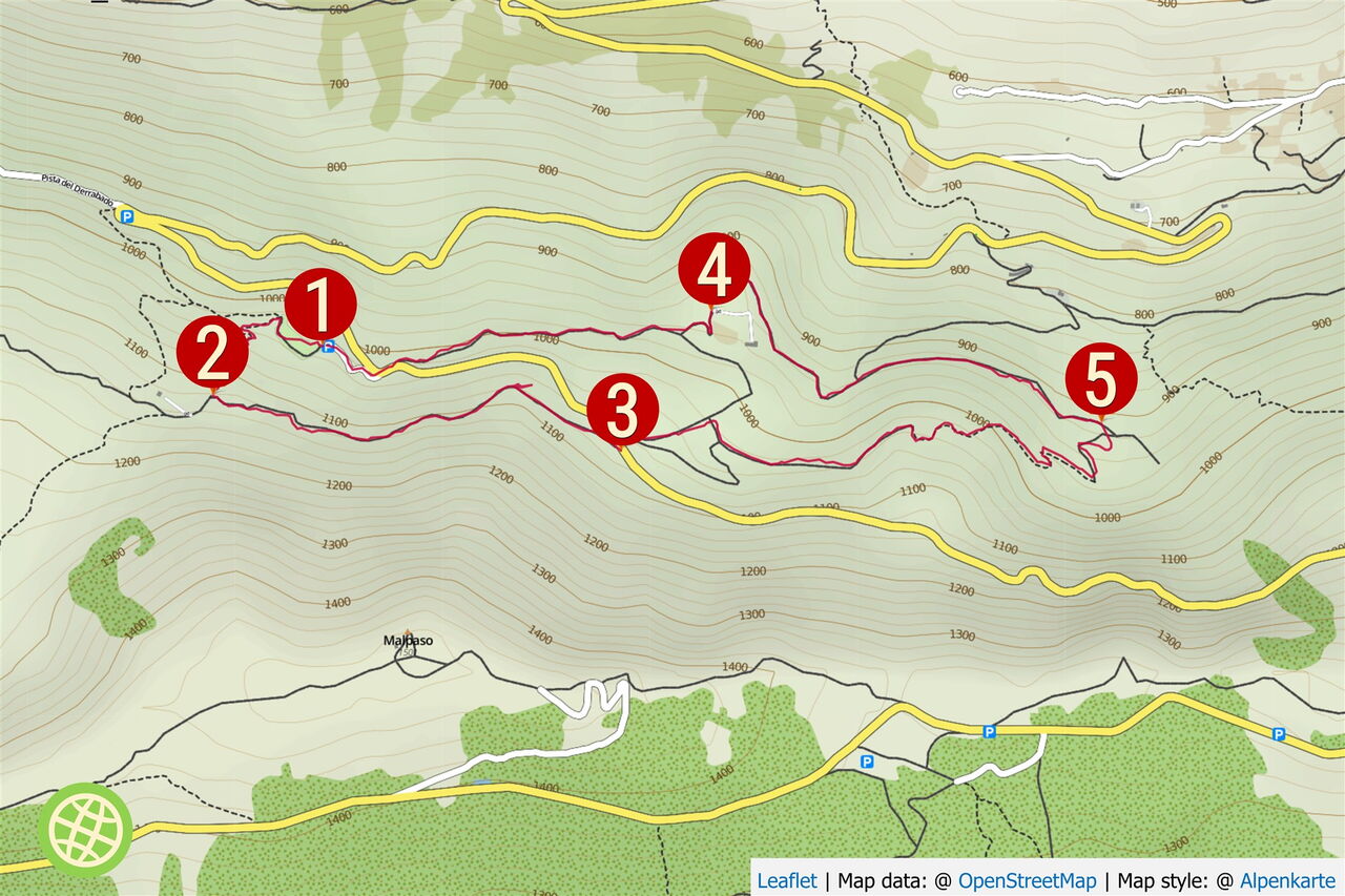 Einfacher Spaziergang bei stets eindeutiger Wegführung. Art des Weges: 100 % Pfade und Pisten. Zusatzausrüstung: keine. Einkehrmöglichkeit: keine. Beste Wanderzeit: ganzjährig.