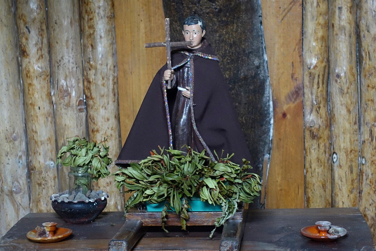 Nach 700 m auf der Straße zweigt ein 3 m breiter Pfad nach rechts ab, der in seinem weiteren Verlauf über Lapilli bis zur (04) Ermita San Salvador (1276 m) führt. Je nach Wetterlage hat uns der Nebelwald wieder eingefangen.