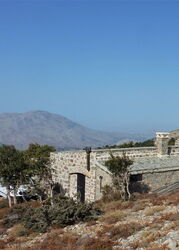 Von der Unterkunft in 01 Kato Asites (552 m) gehen wir auf der bergab führenden Asphaltstraße bei der ersten Möglichkeit rechts und anschließend halb rechts – direkt hinter der Kirche – weiter auf einer betonierten Piste. Dort, wo diese Piste eine Rechtskehre macht, gehen wir geradeaus auf der Schotterpiste weiter.