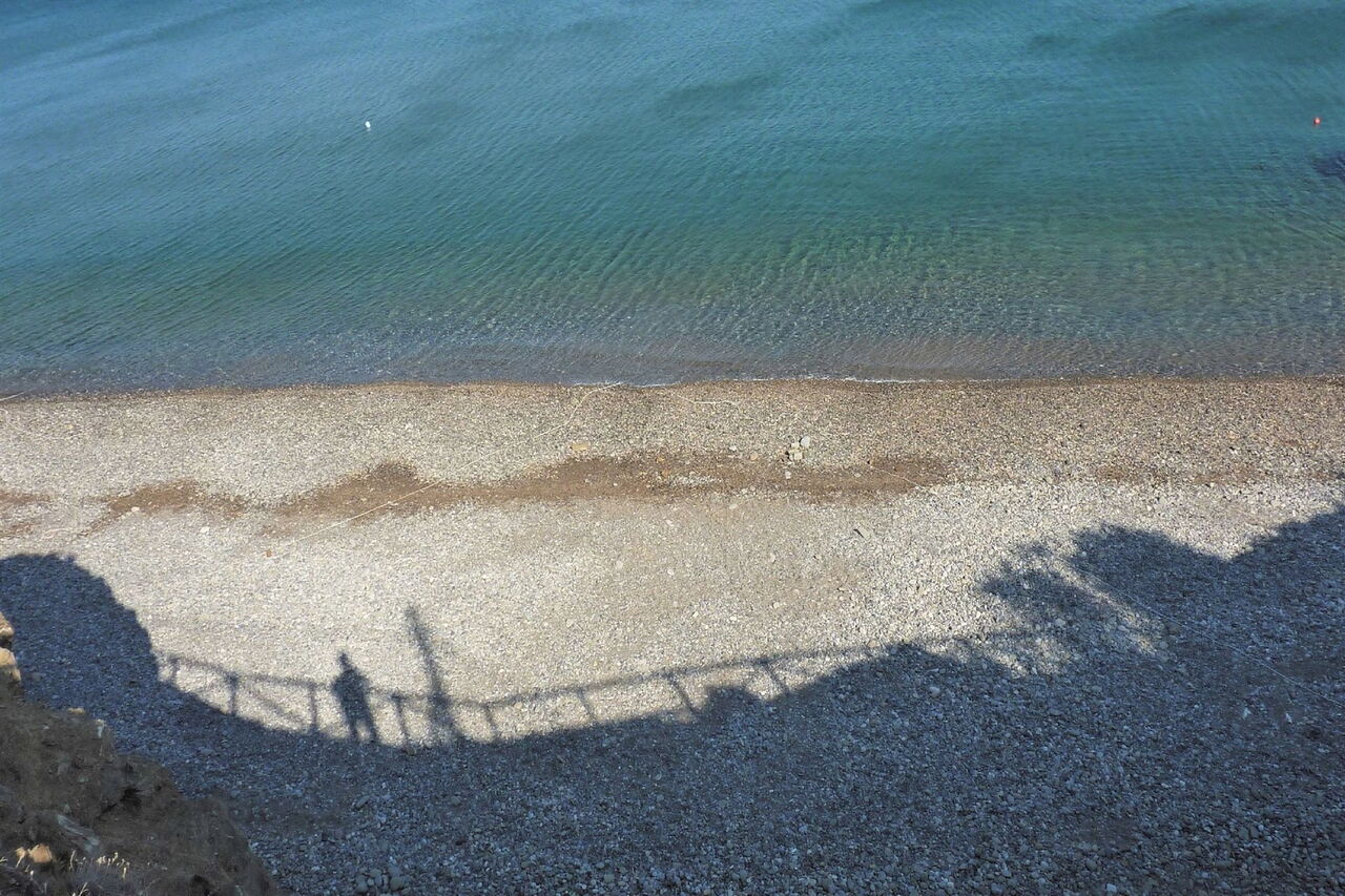 Parallel und oberhalb der Schlucht verläuft die Piste, bis wir das Meer ausmachen können und durch wenige Serpentinen, nun bergab, 02 Kato Zakros Strand (2 m) erreichen. Weit ab von den großen Tourismuszentren lebt man hier vom Tourismus und ca. 250.000 Olivenbäumen. Der 600 m lange Sandstrand lädt zum Verweilen ein. Viele Tavernen sorgen für die Verköstigung.