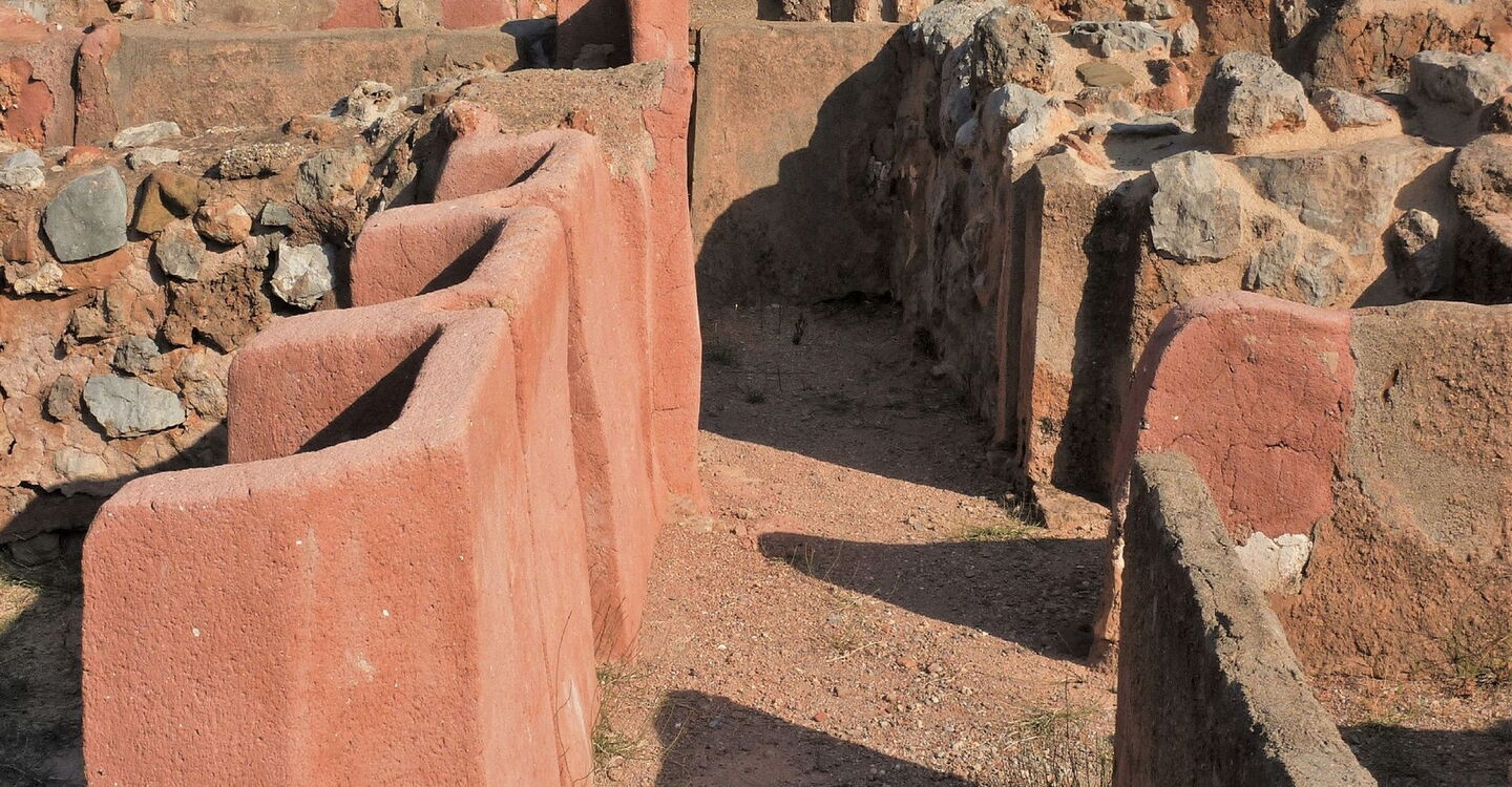 Zwischen der Taverne Akrogiali und dem links liegenden Parkplatz gehen wir wieder landeinwärts, folgen der Ausschilderung zu den archäologischen Stätten und gelangen zu dem heutigen kulturellen Highlight der Wanderung – ein 03 minoischer Palast (3 m). Er ist der kleinste der bekannten minoischen Paläste – etwa fünf mal kleiner als Knossos. Aufgrund seiner strategisch wichtigen Lage zu den Handelsmärkten von Ägypten, Zypern und dem Nahen Osten war er eine wichtige Drehscheibe. Wie die anderen minoischen Paläste von Kreta wurde er auch um 1900 vor Christus erbaut.