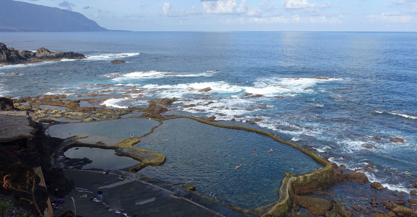 Erst in den 1960er Jahren wurde das El-Golfo-Tal urbar gemacht, indem Mutterboden aus der Hochebene antransportiert wurde. Mit gutem Grund, denn das Tal mit seinem warmen subtropischen Klima eignet sich hervorragend zum Anbau von Südfrüchten, die wir auf der heutigen Wanderung auf den Plantagen der Genossenschaft sehen werden. Viele Restaurants am Weg laden zur gemütlichen Einkehr ein. In einem der schönsten Meeresschwimmbecken kann man im Meer baden und vielleicht lohnt sich noch eine verspätete La Siesta – ein echter Hingucker ist der traumhafte Sonnenuntergang.