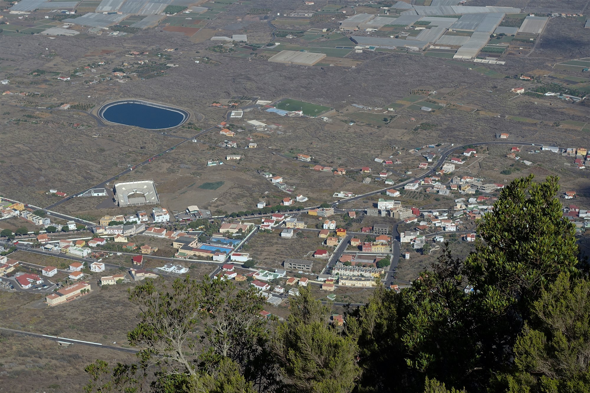 Wir überqueren die HI-550 und folgen der Ausschilderung Richtung Los Mocanes, wo wir nach 1,5 km auf die Verbindungsstraße von Valverde treffen und dieser Richtung Frontera folgen. Vor dem zweiten Palmenhain biegen wir links in die Einbahnstraße. Diese verläuft 90 m parallel zur Hauptstraße und mündet dann in eine weitere Straße. Dort gehen wir weitere 50 m links, um dann rechts hinter dem Haus auf den beginnenden Camino abzuzweigen. Den folgenden halbrechten Abzweiger durch das Gatter ignorieren wir. Auf dem teilweise stark verwachsenen Camino erreichen wir eine geteerte Straße und queren diese, bis sie nach 225 m vor einem roten Haus endet. Wir gehen rechts bis zur Hauptstraße vor und dann links auf der mit Birkenfeigen gesäumten Straße bis zum zentralen Busbahnhof von (04) Frontera (247 m). An der Kreuzung auf Höhe des Busbahnhofs gehen wir scharf links und folgen der Ausschilderung Centro Cultural. Nach 240 m, bei dem Stoppschild, gehen wir rechts, vorbei an den Apartmentos Los Verdoes.