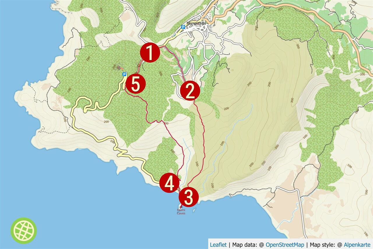 Die Wanderung beginnt mit andauernden herrlichen Ausblicken auf die reizvolle Landschaft der Nordwestküste von Rhodos. Nach dem Abstieg erreichen wir das wunderschöne Kap Fourni und können vom Menschen geschaffene Grabkammern besichtigen, bevor wir ein erfrischendes Bad am Strand von Fourni nehmen. Beim Aufstieg fokussieren wir unsere volle Konzentration auf die Wegfindung, um dann zum Schluss der Wanderung noch einmal mit einem wunderschönen Ausblick auf das Kastell Monolithos belohnt zu werden.