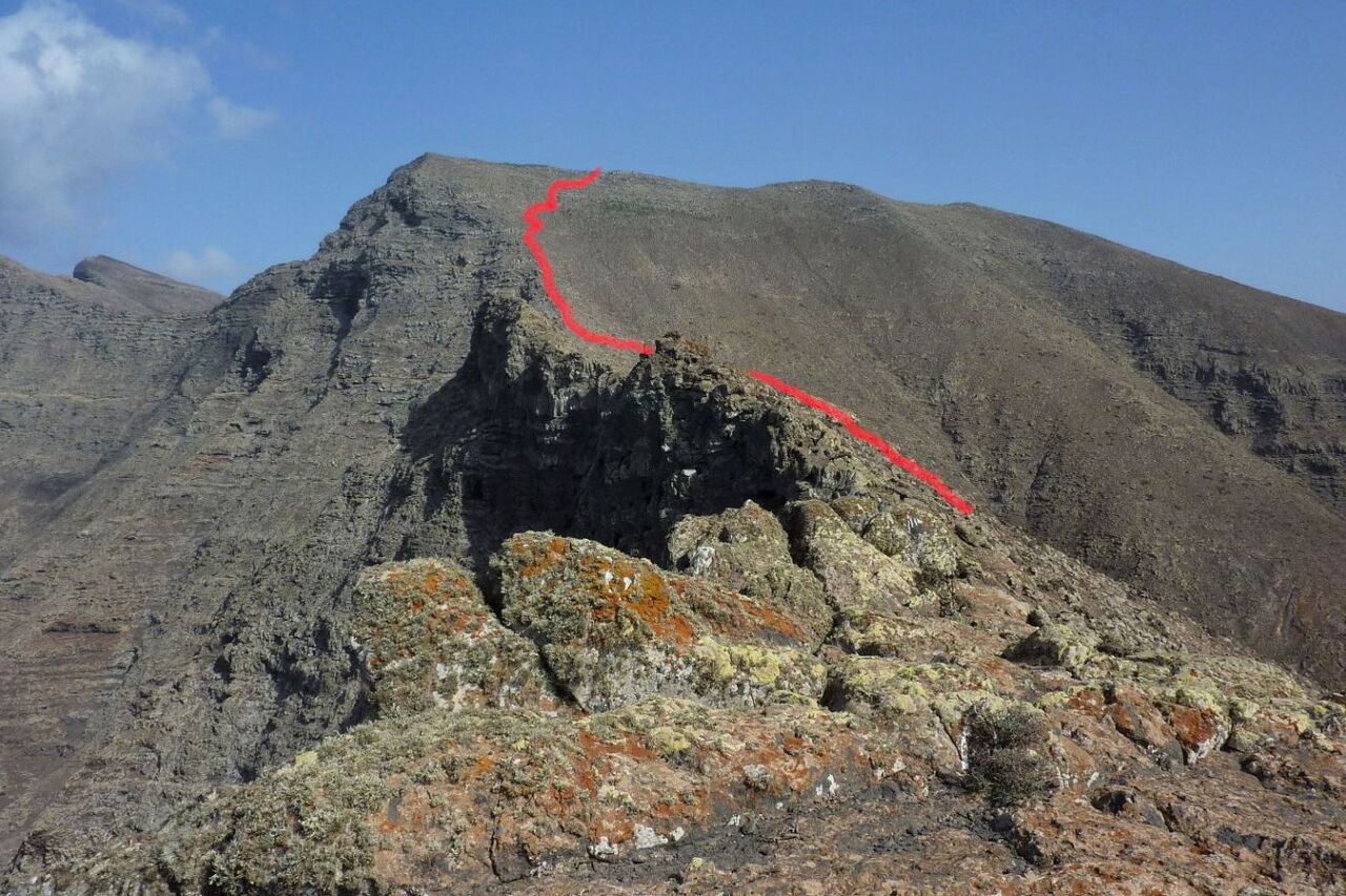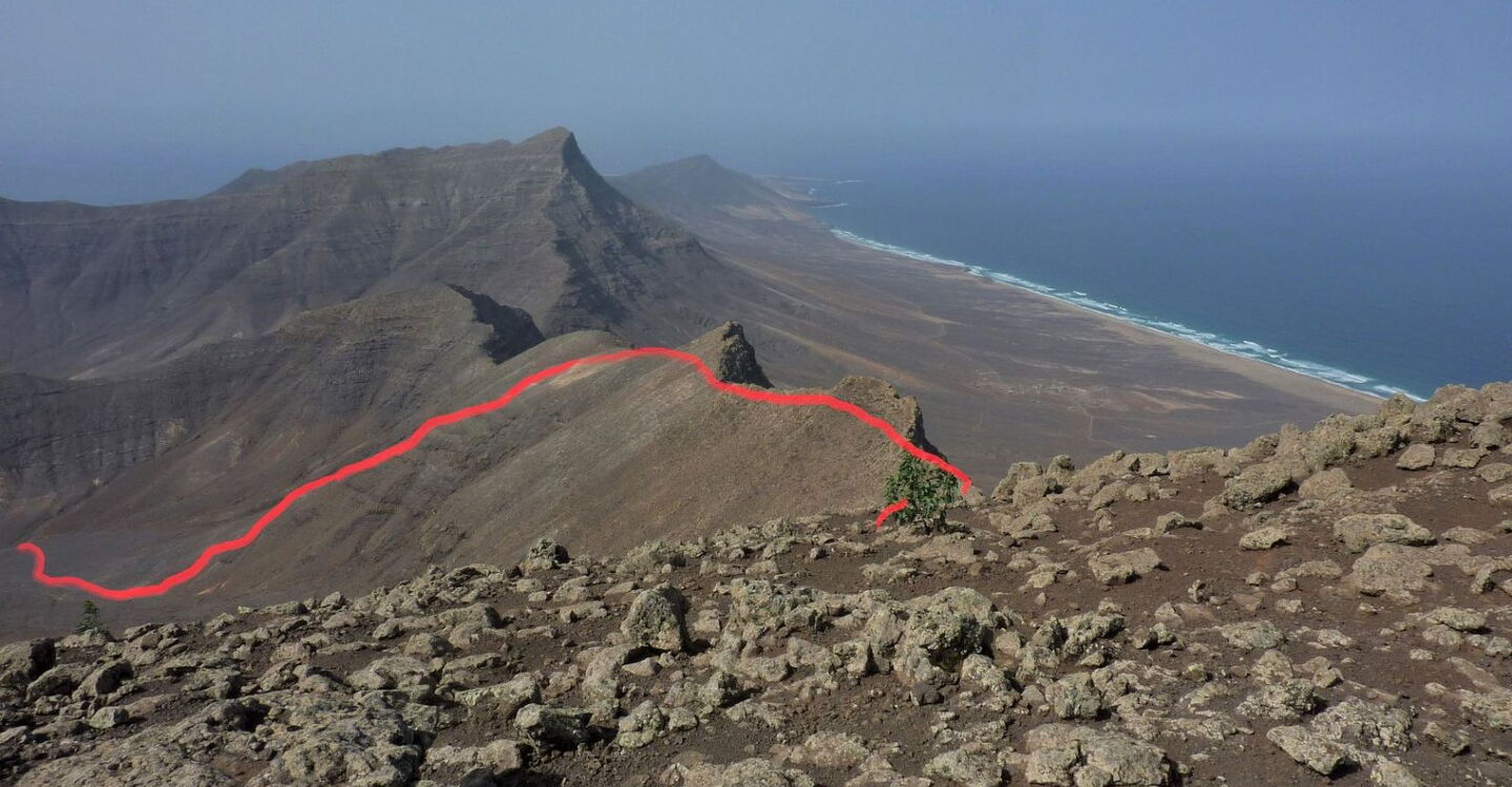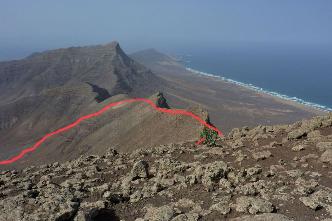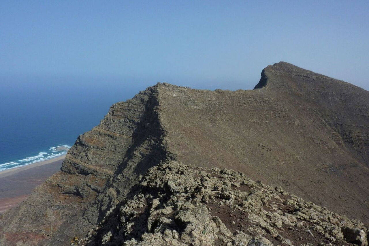 In direkter Nachbarschaft zum höchsten Berg der Insel, dem Pico de la Zarza, befinden sich zwei eher unbekannte Gipfel. Es sind der Morro del Cavdero mit 749 m (der dritthöchste Berg der Insel) und der Pico de Mocan mit 792 m (der zweithöchste Berg der Insel). Aus einem lang gestreckten Talkessel, der bei Morro Jable endet, besteigen wir über die Westflanke den Morro del Cavdero. Es folgt ein äußerst spannender Abstieg über einen dem Meer zugewandten Grat, spektakuläre Tiefblicke garantiert – eine Quelle für Glücksmomente.