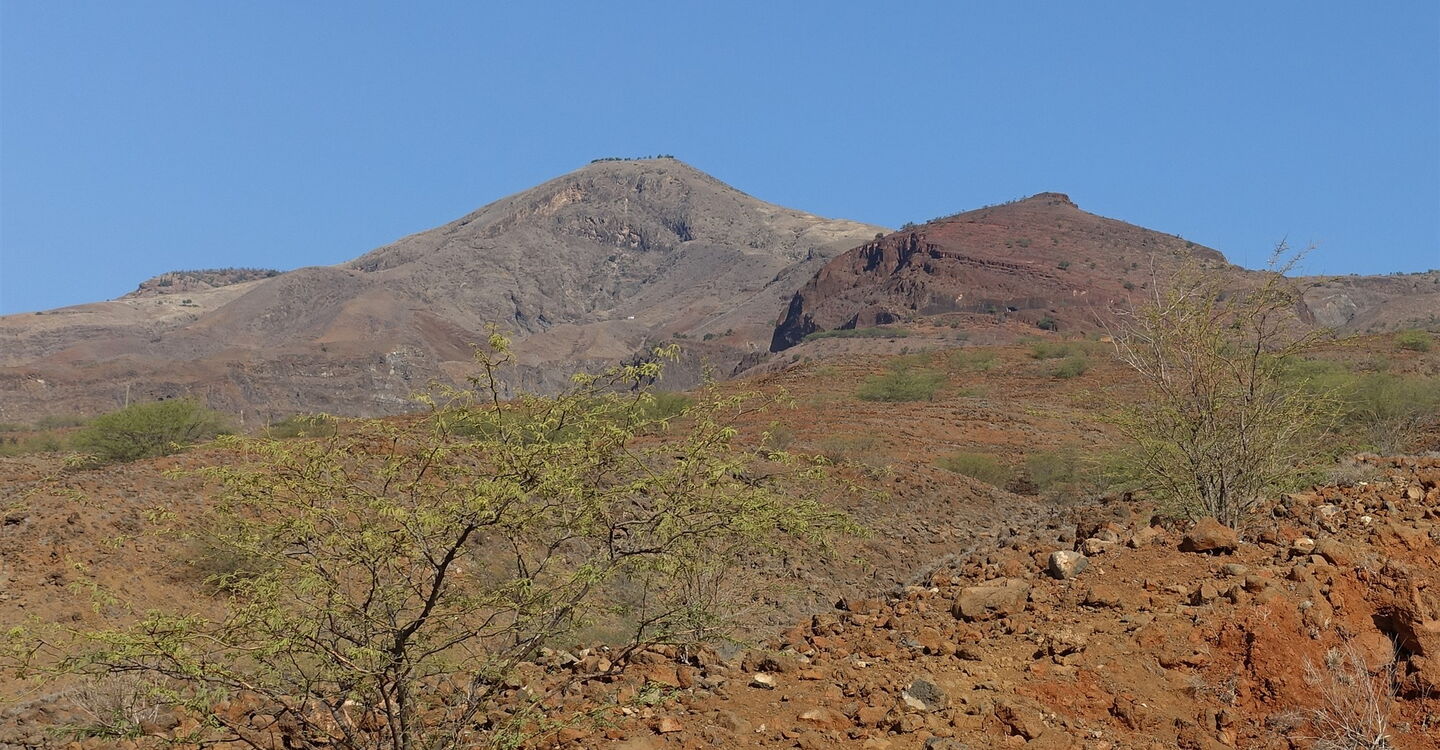 Der Abstieg ist eine Erlebniswanderung durch die Vegetationsstufen der Insel. Vom Bergdorf unterhalb des Gipfels des 1585 m hohen Pico da Cruz, mit seinen oft tropfenden Nebelwäldern, steigen wir zu vereinzelten Gemeinschaften der Kapverdischen Wolfsmilch ab. Unterhalb von 700 Höhenmetern gelangen wir dann in eine savannenähnliche Landschaft mit Akazien. Der verbleibende Caminho zum Hafen führt vorbei an verdorrten Feldern und schwarzem Lavagestein, das im krassen Farbkontrast zu dem erfrischend wirkenden und dunkelblauen Atlantischen Ozean steht. In den Morgenstunden kann man bei gutem Wetter und klarer Luft die Struktur der Landschaft über die gesamte Länge der Insel perfekt nachverfolgen. Dabei sieht man den einen oder anderen bestiegenen Gipfel, die damit verbundenen Emotionen kann man Revue passieren lassen.