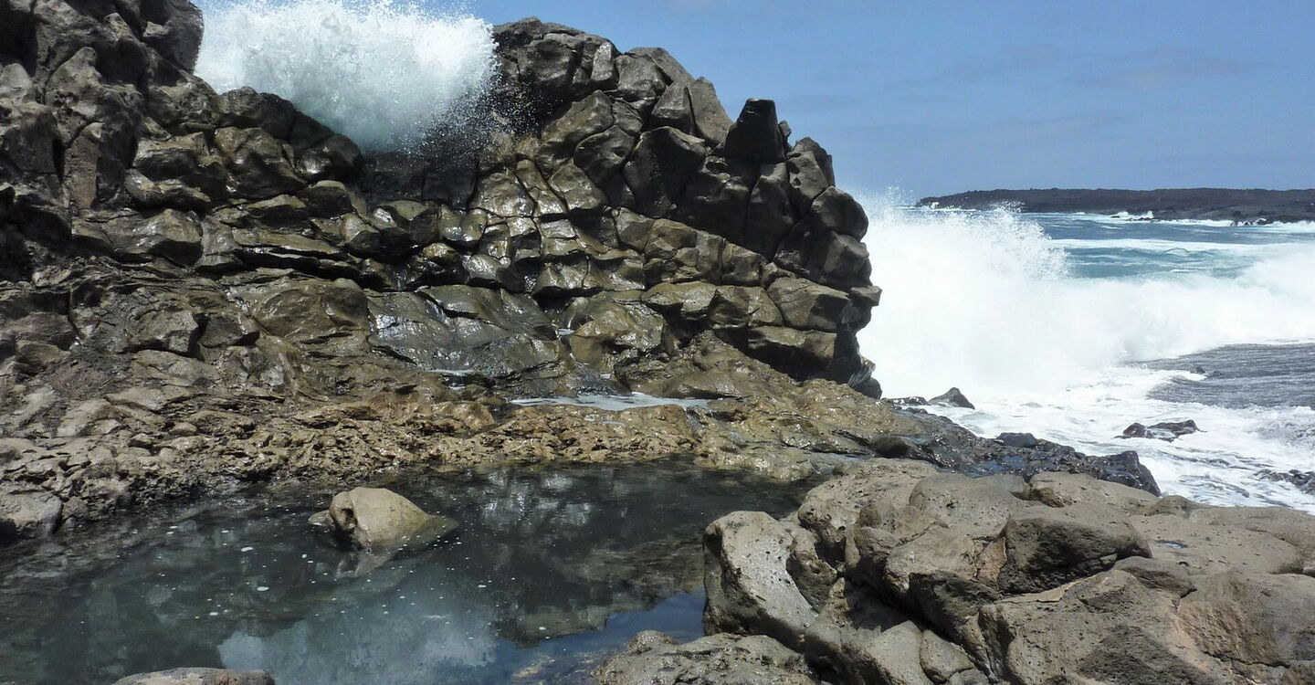 Es erwartet uns eine spannende Pkw-Fahrt durch eine lebensunfreundliche Lavalandschaft, gefolgt von einer erlebnisreichen Wanderung zu einem Traumstrand. Art des Weges: Anfahrt auf einer Schotterpiste. Die kurze Wanderung geht über Sand und Felsen. Ein Strand, der zum Verweilen einlädt! Daher sollte folgende Ausrüstung nicht fehlen: Sonnenhut, Sonnencreme, Sonnensegel, Essen und Trinken. Einkehr: Es gibt weit und breit keine Einkehrmöglichkeit. Beste Zeit für diese Tour: Das ganze Jahr über. Auf der linken Seite des Strandabschnitts erhebt sich eine 5-7 m hohe Felswand, an der sich die Wellen spektakulär brechen. Direkt vorgelagert befindet sich ein natürliches Wasserbecken, in dem man sich abkühlen kann.