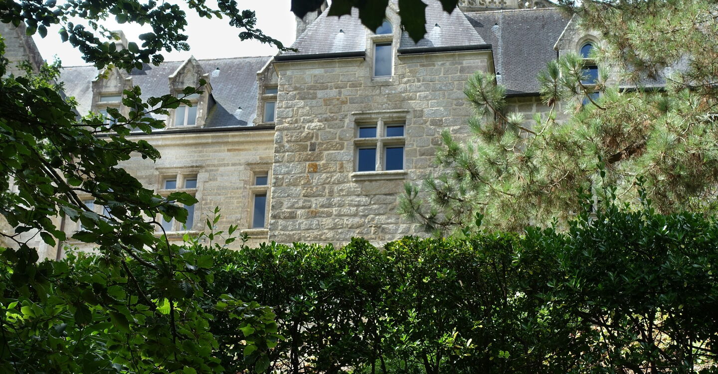 Wir setzen unseren Weg fort. Bei einer Holzbrücke kann man rechts durch das Dickicht des Waldes das im 14. und 16. Jahrhundert erbaute 03 Château du Hénan (10 m) sehen. Die ehemalige Verteidigungsburg wurde im 19. Jahrhundert aufwendig renoviert. Auffällig ist der schiefe Hauptturm, wobei nicht ganz klar ist, ob es ein Resultat des in die Jahre gekommenen Schlosses ist oder eine technische Raffinesse des Architekten, um den immer stark wehenden Nordwestwinden Paroli zu bieten.