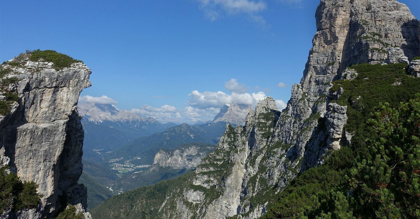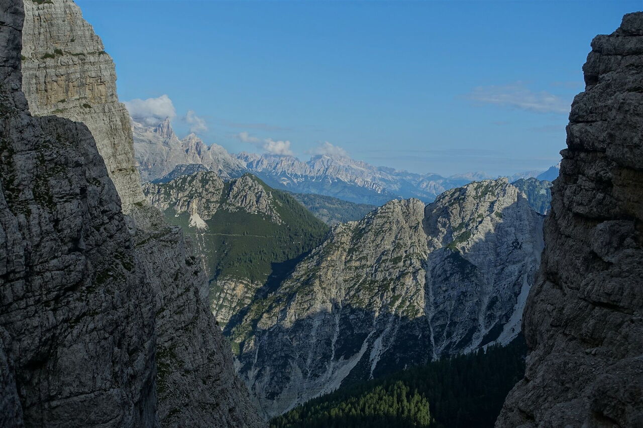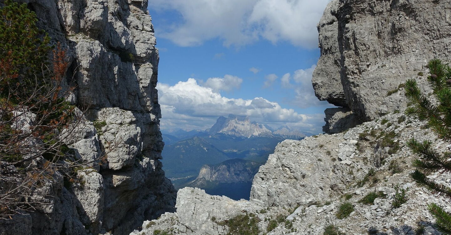 Aufgrund der zu bewältigenden Höhenmeter und des schwierigen Geländes ist die 11. Etappe die zweitschwerste Tour des Dolomitenhöhenweges Nr. 3. Aber sie ist zugleich eine Königsetappe, da die landschaftlich faszinierende Strecke die gesamte südliche Bosconerogruppe durchquert. Ein besonderes Naturspektakel erleben wir an der Forcella Toanella. Richtung Westen erhebt sich der 2.419 m hohe Sasso di Toanella und rechts davon der 2.469 m hohe Sasso di Bosconero. Schaut man durch diese senkrecht aufragenden Felswände oberhalb der Scharte Richtung Norden, so erblickt man den Monte Pelmo, die Punta-Sorapiss-Gebirgsgruppe und den Antelao. Die schönsten Aussichtspunkte liefert oftmals die Natur selbst.