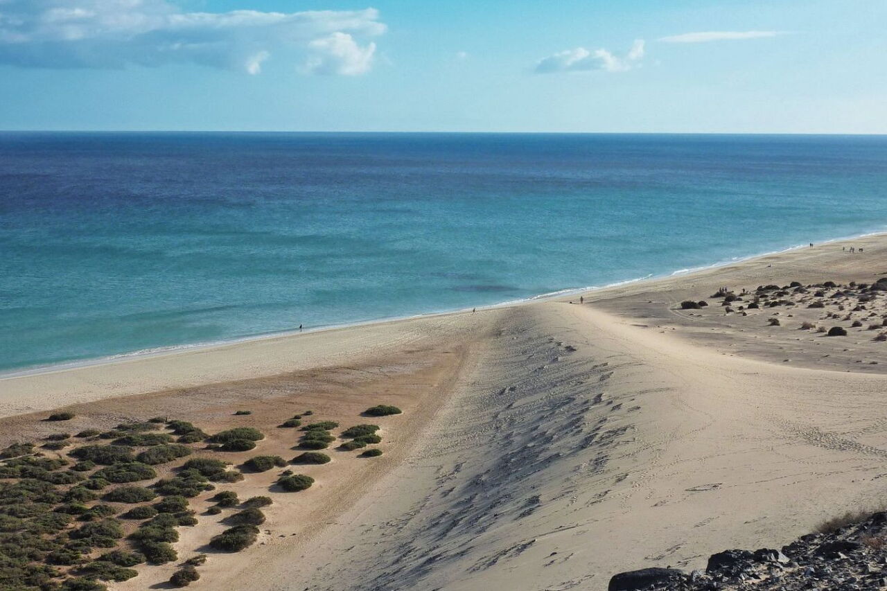 Diese Strandwanderung gehört zu den schönsten auf Fuerteventura. Zum Auftakt geht es vorbei an der beeindruckenden Dünenlandschaft bei Risco del Paso. Die nachfolgende Strecke führt am türkisfarbenen Atlantischen Ozean mit seinen traumhaften Stränden und einsamen Strandbuchten entlang. Ein weiteres Highlight ist eine kleine Kolonie von nordafrikanischen Atlashörnchen, die sich füttern und fotografieren lassen. Hier im touristischen Zentrum im Süden der Insel führt der Weg an allen Hotels mit Rang und Namen vorbei. Wem das nicht genug ist, der kann die Wanderung bereits am Hotel Sol Gorriones beginnen, das sind 3,8 km mehr. Außerdem kann man noch bis in das alte Fischerdorf Morro Jable laufen, was zusätzliche 600 m bedeutet.