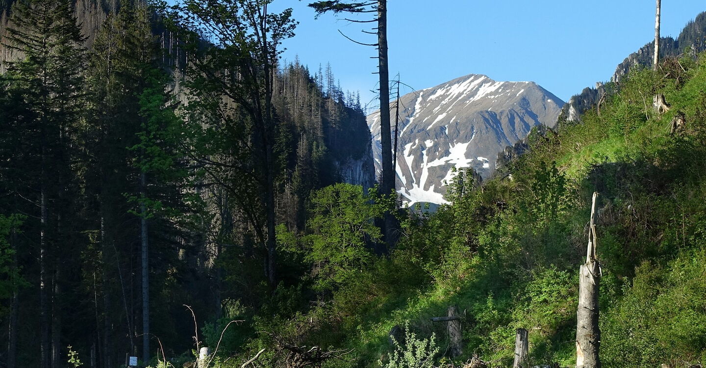 Wir steigen ab durch einen der besterhaltenen Wälder in der polnischen Tatra. Zweimal queren wir auf Brücken den 03 Gebirgsfluss Roztoka (1314 m).