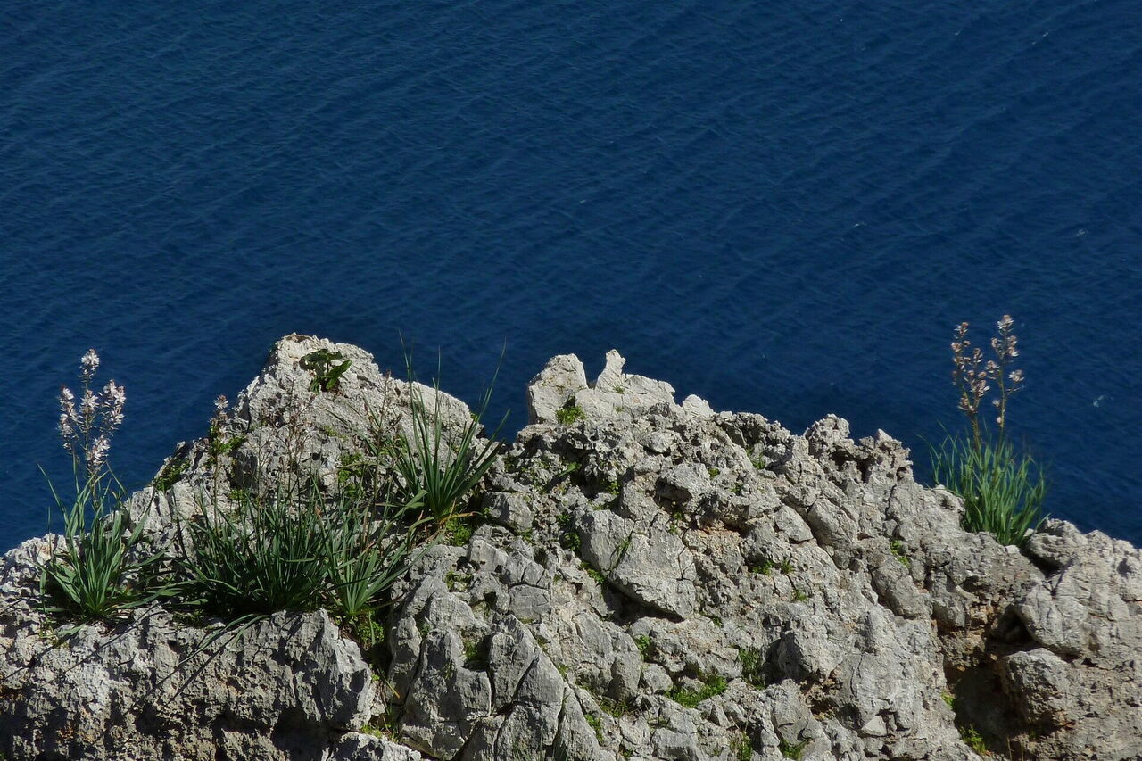 Wir erreichen die (02) Schlüsselstelle eins (12 m). Bei vertrockneten Bäumen führt ein Weg rechts zu den Häusern hoch, wir gehen aber halb links auf dem zunächst noch gut auszumachenden Küstenpfad. Es folgt ein wildromantisches, unberührtes wegloses Stück. Hier achten wir darauf, dass wir nicht zu dicht an die Klippe gelangen, aber auch nicht zu hoch ins Buschwerk kommen. Haben wir die Überreste eines Zaunes erreicht, so haben wir bereits einen steileren Klippenbereich umlaufen. Schlussendlich gelangen wir an einen intakten Ziegenzaun. An diesem steigen wir bergauf, um im oberen Bereich durch Gatter auf einen Pfad zu gelangen.
