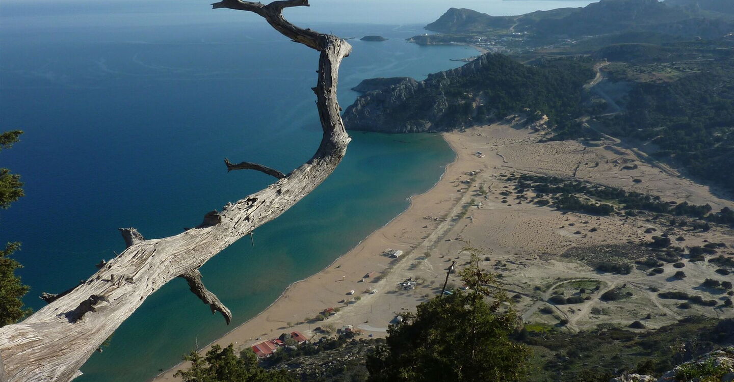 Eine Legende besagt, dass Fischer Ende des 19. Jahrhunderts eine Ikone am Strand von Tsambika fanden. Man beschloss, auf dem in der Nähe liegenden, 325 m hohen Berg eine Kapelle für die Ikone zu errichten. Es mussten alle Bewohner der Gegend, auch die kinderlosen Frauen, mithelfen. Als die Kapelle fertig war, wurden diese Frauen wie durch ein Wunder schwanger. Noch heute wallfahren Frauen zur Kirche der heiligen Jungfrau, mit der Bitte um Fruchtbarkeit. Auf der gesamten Wanderung ergeben sich immer wieder faszinierende Ausblicke über die komplette Nordwestküste von Rhodos. Und dann ist da noch der Tsambika-Strand, er gehört mit zu den schönsten Stränden auf Rhodos. Malerisch liegt der 800 m lange, feine goldene Sandstrand zwischen 2 Hügelketten.