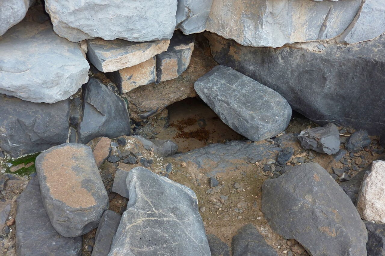 Ein Highlight der Tour ist die kleine versteckte Wasserstelle etwas erhöht am Wadirand. Sie ist von 15 cm x 30 cm flachen Steinen abgedeckt. Selbst nach der Trockenzeit hatte sie noch Wasser.