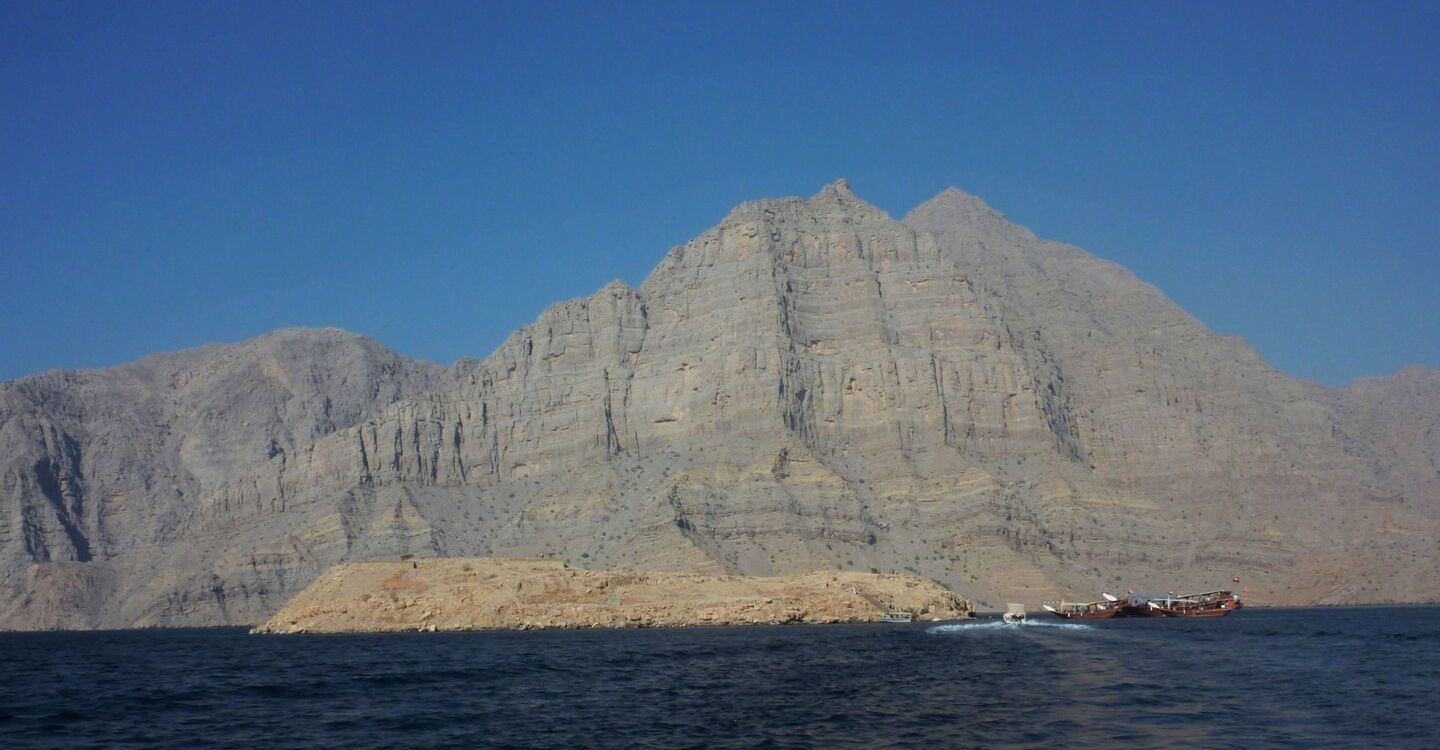 Vom Hafen aus fahren wir erst noch kurz auf der Straße von Hormus. Von hier sind es 65 km zum Iran, bis wir dann in den traumhaft schönen Chaur-asch-Scham-Fjord eintauchen.