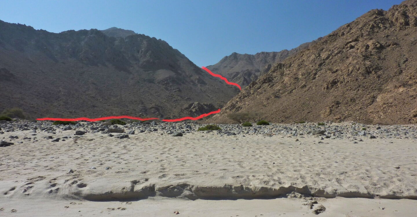 Man sagt, dass am Myam-Strand, der sogenannten Schmugglerbucht, illegale Einwanderer aus dem Iran ankommen. Wir gehen weglos im Trockenflussbett mal gleich 280 hm auf 1,1 km Strecke bergauf.