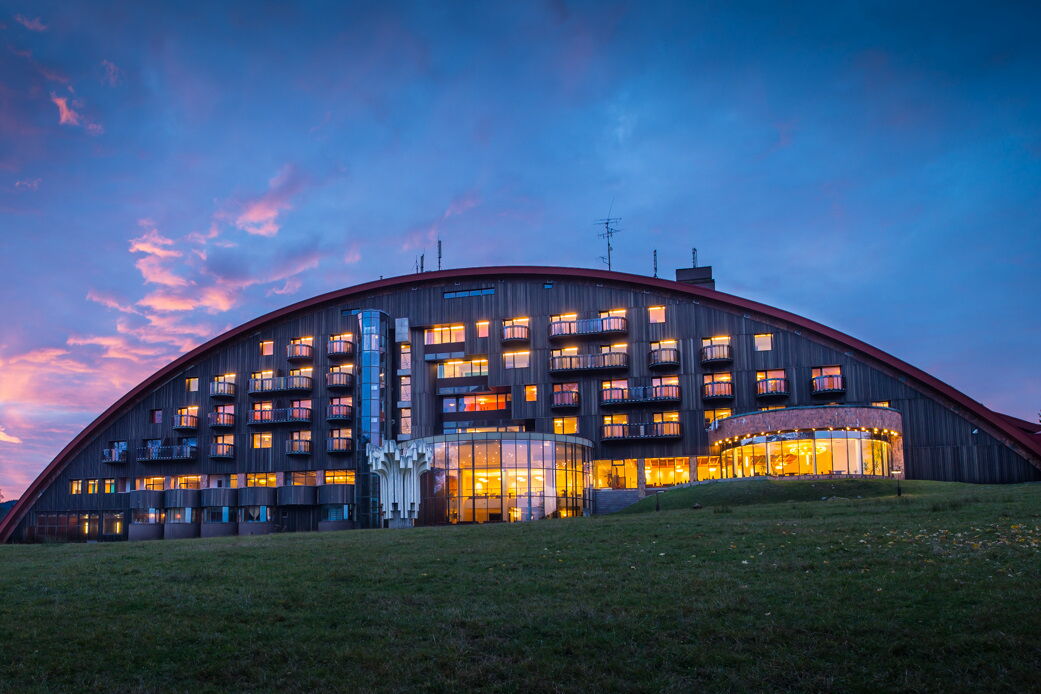 Der 14 km lange Kalkkamm der Belaer Tatra liegt fast senkrecht zum Hauptkamm der Hohen Tatra und erstreckt sich vor uns am Horizont von Ost nach West. Der Pfad mündet in eine Piste, die an einer Absperrung endet. Rechts von uns befindet sich eine Brücke, wir gehen geradeaus auf der asphaltierten Straße weiter. Kurz vor dem kleinen Dorf 05 Tatranská Javorina (1027 m) gabelt sich der Weg. Geht man halb links, so gelangt man zur hölzernen römisch-katholischen Kirche Anna, die 1903 erbaut wurde. Nach einigen Metern erreicht man die Hauptstraße, an der man links bergauf geht, um dann rechts in die Stichstraße bis zum Hotel Montfort vorzugehen.