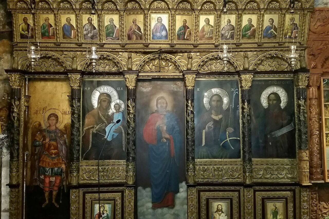 Hier gehen wir rechts in die kleine Gasse, bei der folgenden Weggabelung halb rechts und erreichen nach insgesamt 260 m von der Moschee die (05) Ekklisia Agios Fanourios (9 m) – eine geheimnisvolle dunkle Kirche, die aufgrund des jahrhundertelangen Kerzenrußes stark beschädigt wurde. Wir setzen unseren eingeschlagenen Weg fort, bis wir bei der Galleria Celina und 3 Brunnen auf eine Gassenkreuzung treffen. Hier gehen wir links auf dem grauschwarz gepflasterten Stein. Bevor wir einen Torbogen unterqueren, rechts befindet sich ein Brunnen, biegen wir rechts in die sehr schmale Gasse ab. Die Gasse endet, rechts folgen wir der Ausschilderung Richtung Kirche, gehen halb links an dieser vorbei und treffen auf das Hotel Saint Michelle und die Stadtmauer. Wie gehen 30 m rechts an dieser entlang, um dann links durch einen Fußgängertunnel in den Burggraben zu gelangen. Dort gehen wir links Richtung Ausgangspunkt.