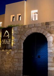 Wir setzen unseren eingeschlagenen Weg fort und gehen nach 60 m, noch vor den 3 Seepferdchen, links in die Einbahnstraße. Wir treffen auf die (02) Kahal-Kadosh-Shalom-Synagoge (11 m) – das älteste jüdische Gotteshaus Griechenlands. Die 1577 erbaute Synagoge bildete das Zentrum des Judenviertels von Rhodos, in dem 1930 etwa 4000 Menschen lebten. Wir gehen auf der Einbahnstraße zurück, links an den Seepferdchen vorbei und treffen auf einen großen Platz mit mächtigen Birkenfeigen. Dort befindet sich ein Gedenkstein an die jüdischen Kriegsopfer von 1944. Wir setzen den Weg weitere 140 m fort, lassen den Brunnen links liegen und gehen in die Einbahnstraße, vorbei an zahllosen Läden, bis rechts der Blick durch das Marientor zum alten Hafen freigegeben wird.