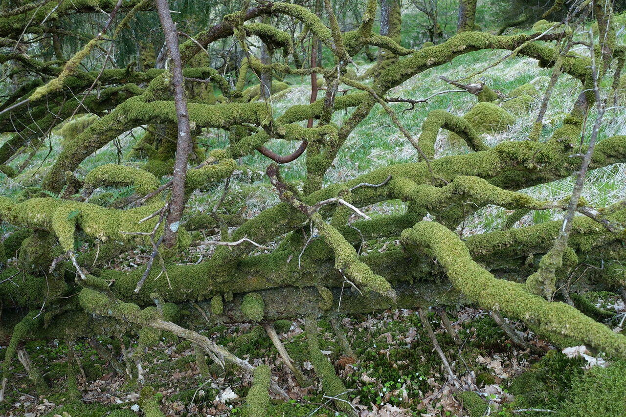 Vom 01 Parkplatz (2 m) am Ende der Straße zum kleinen Ort Arivegaig folgen wir dem weiterführenden Weg über die Brücke entlang der südlichen Kentra Bay. Wir überqueren eine Holzbrücke und ignorieren den Pfad, der links zu einer Wasserkraftanlage aufsteigt. Dann gehen wir direkt auf ein Gatter zu – durch dieses kommen wir auf dem Rückweg. Hinter den zwei Steinhäusern des Dorfes Gorteneorn folgt ein schöner Wegabschnitt durch eine Waldplantage.