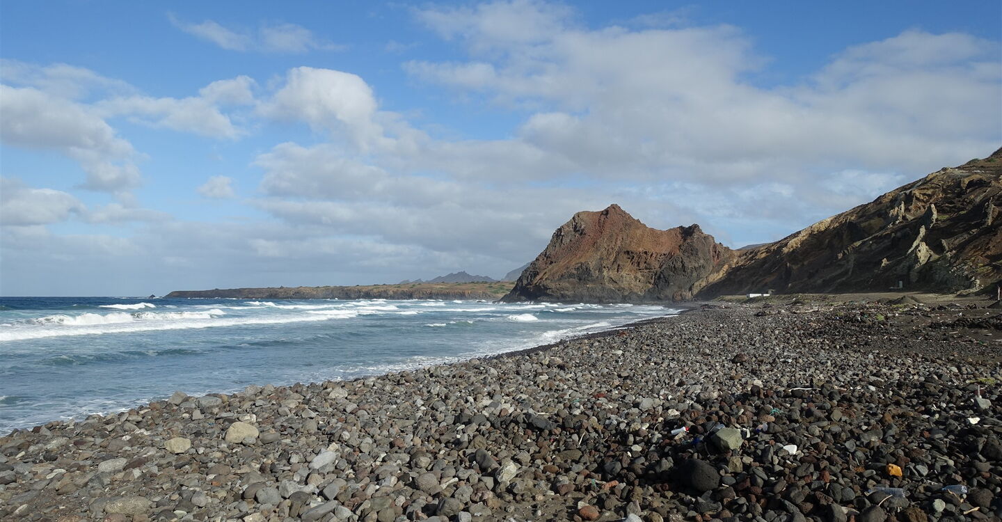 Zum Auftakt flanieren wir durch die Gassen der Inselhauptstadt, mit seiner prächtigen Kirche, dem herausgeputzten Hauptplatz und schönen Kolonialbauten. Durch das Bett eines Trockenflusses wandern wir gemächlich Richtung Meer, fernab jeglicher Zivilisation. Über ockergelbe Sandsteinformationen quert der Pfad spektakulär einen Bergrücken. Dabei schaut man bis zur Bergwelt am östlichen Ende der Insel. Auf dem Rückweg gehen wir durch eine Schlucht und genießen von einem verträumten Aussichtspunkt den Blick auf Vila da Ribeira.