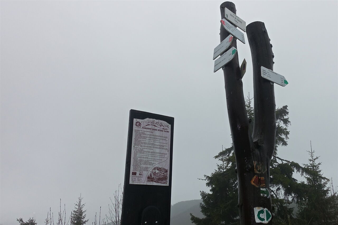 Nach einem längeren Wegstück erreichen wir den 04 Sedlo za Lenivou (1378 m) und folgen rechts der Ausschilderung Richtung Čertovica.